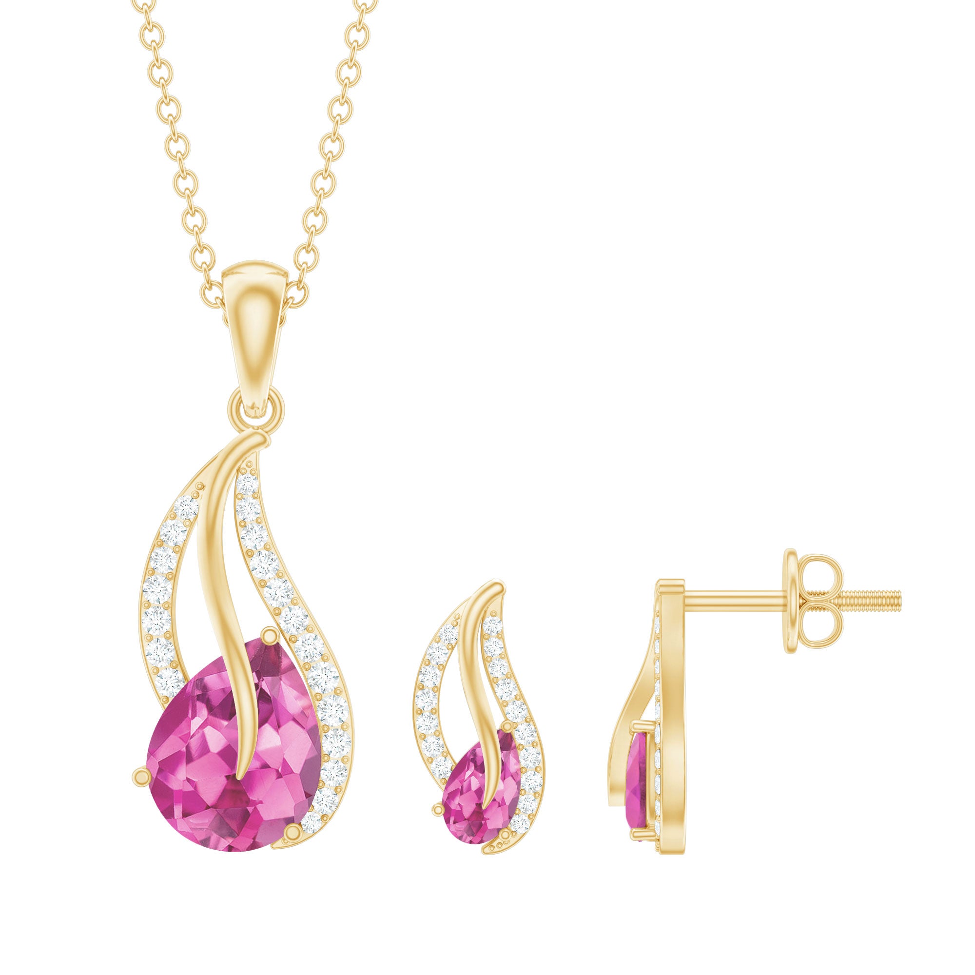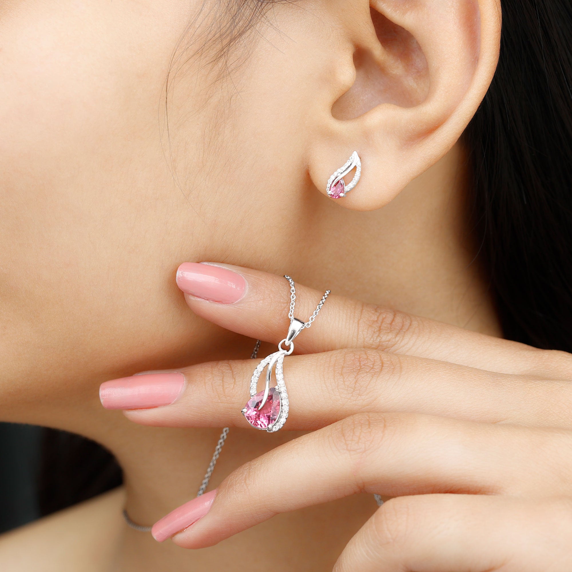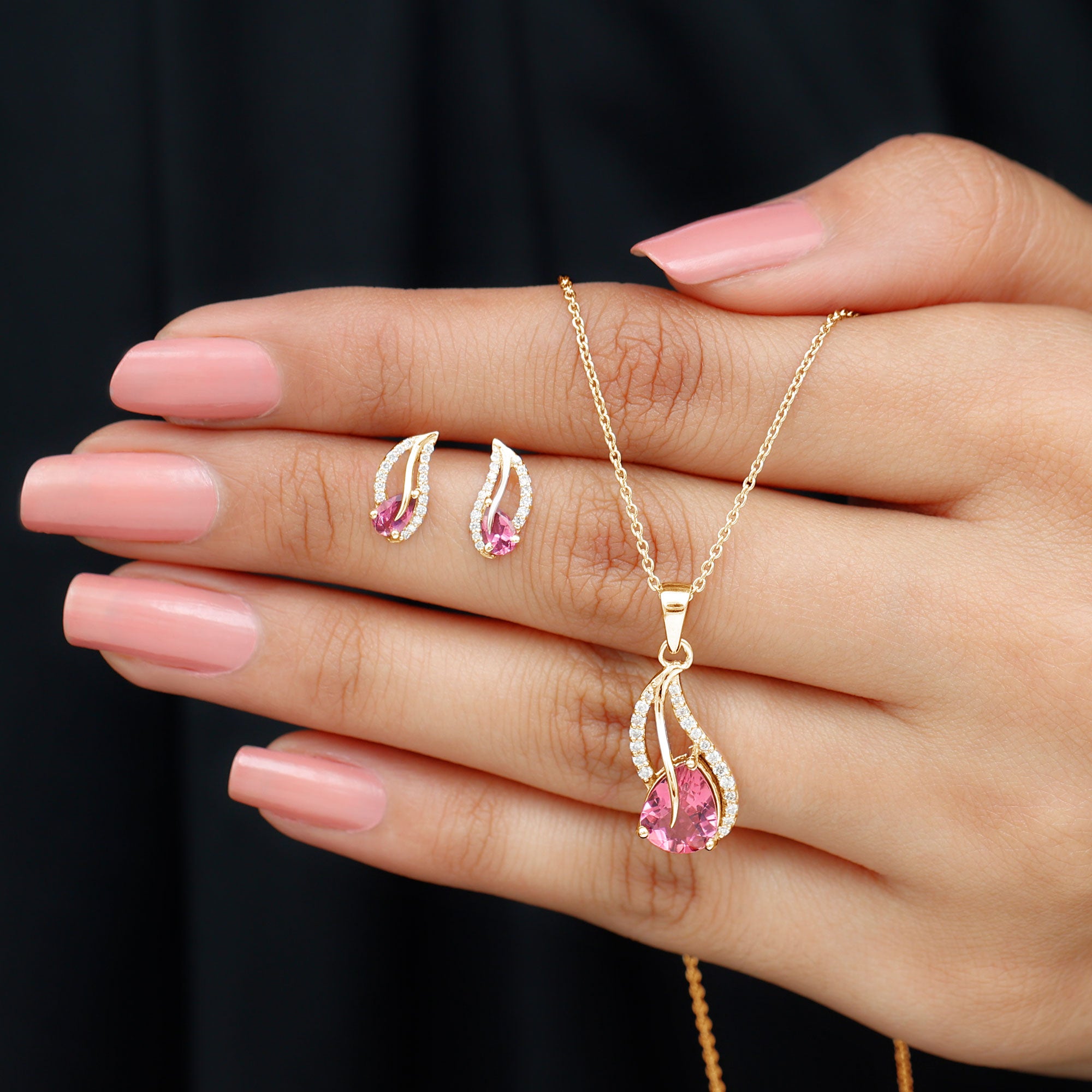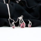 Pear Shape Pink Tourmaline and Diamond Leaf Jewelry Set