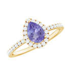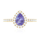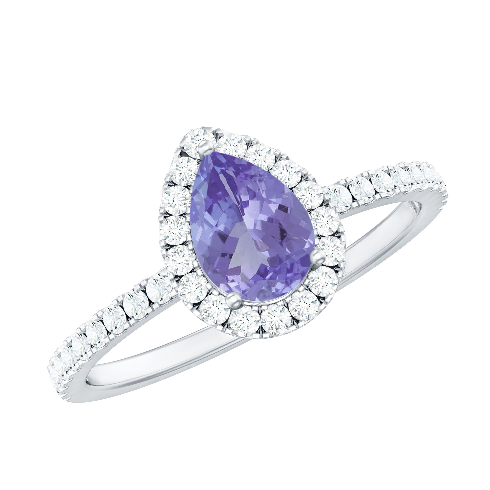 Channel your inner elegance wearing a royal Tanzanite Teardrop Ring everyday! Standing out for its royal pop of purple, it has been embedded with the centerpiece of 5X7 MM Pear Shape Tanzanite, made all the more eye-striking by sparkling Halo and side-stones of Round Shape Diamond. Simple yet stunning, this Tanzanite Halo Ring doesnt require a special occasion to be flaunted.