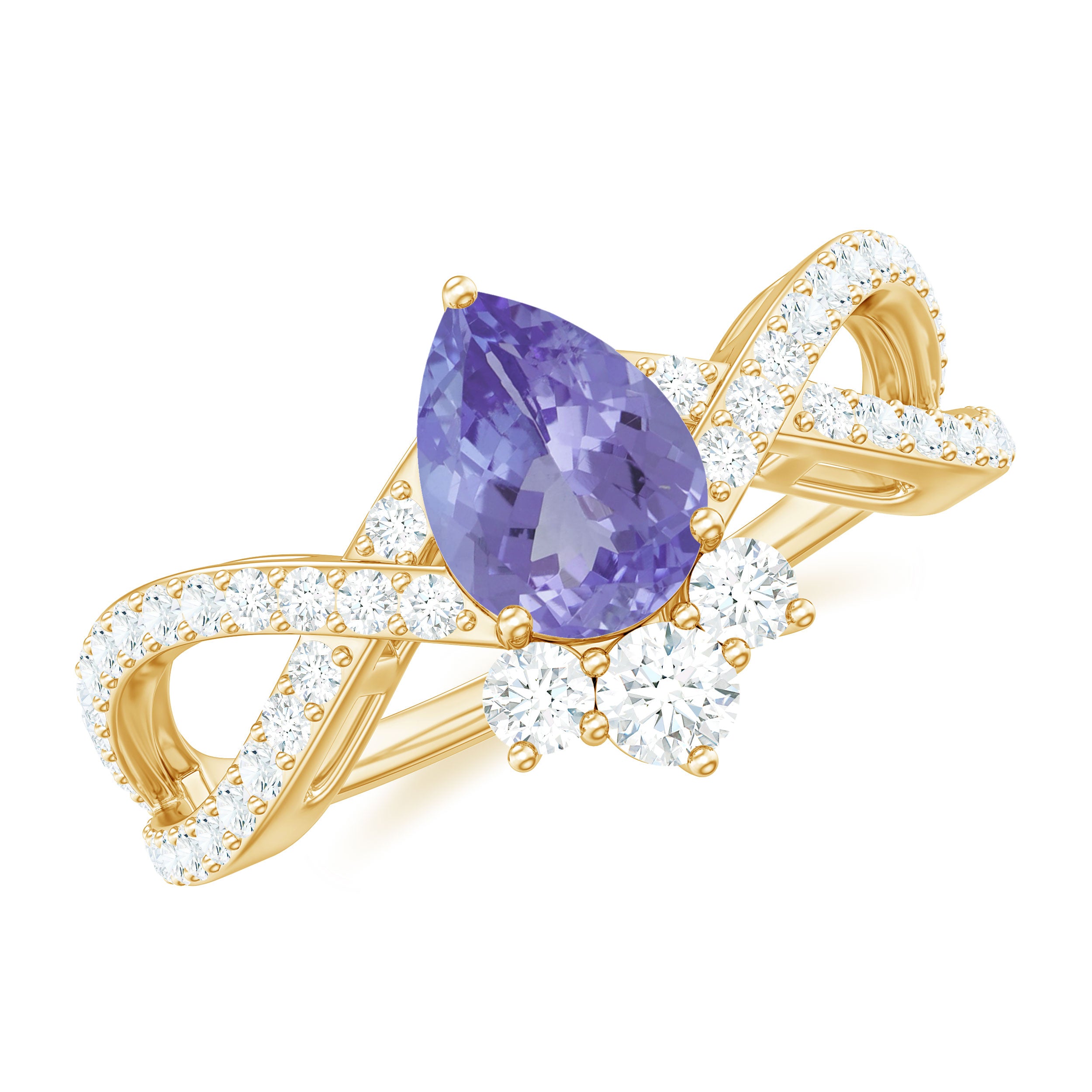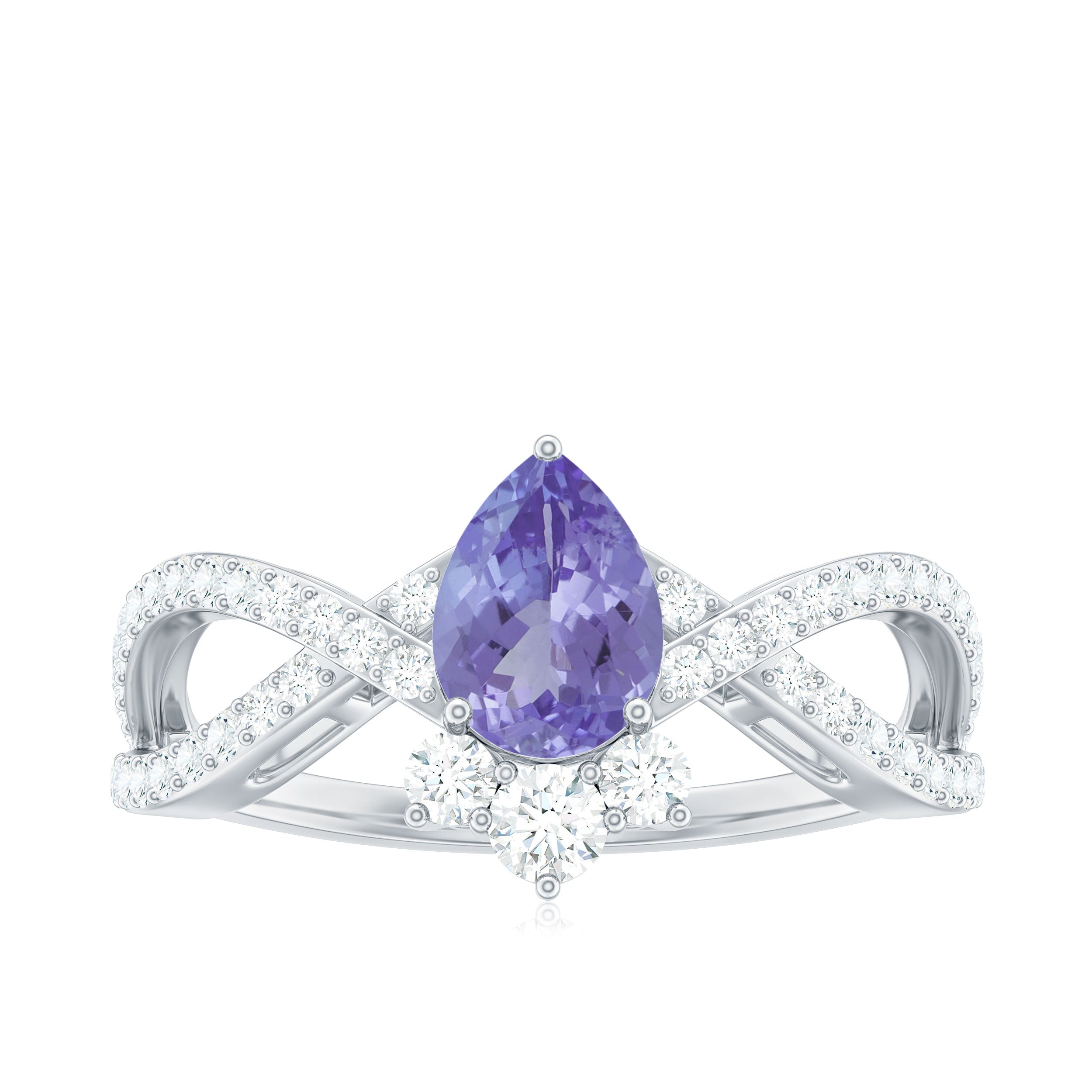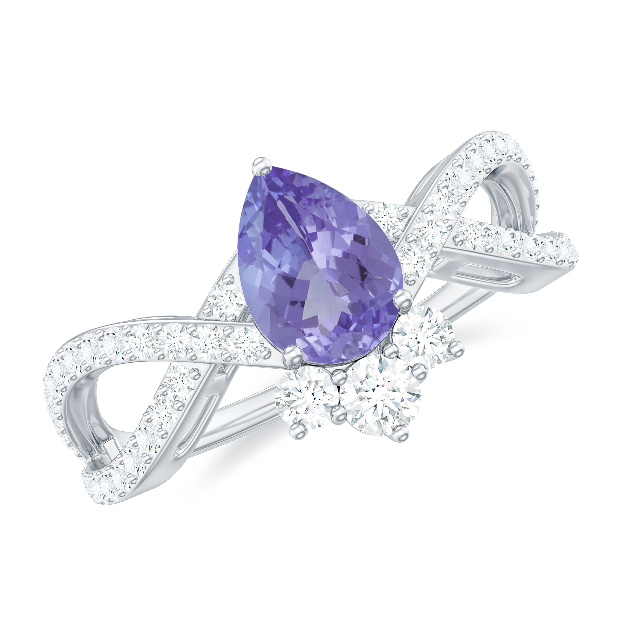 Pear Shape Tanzanite Solitaire Crossover Ring with Diamonds