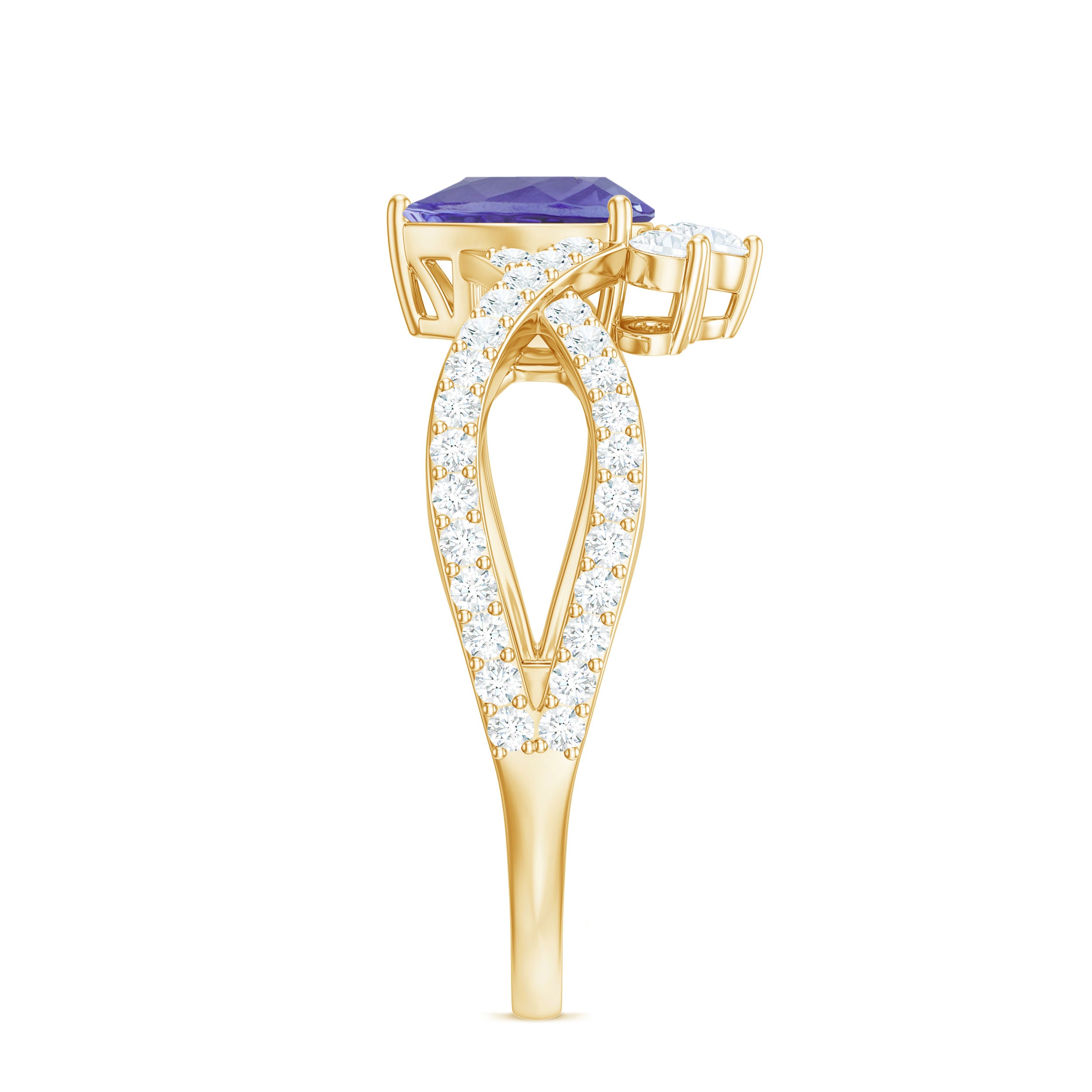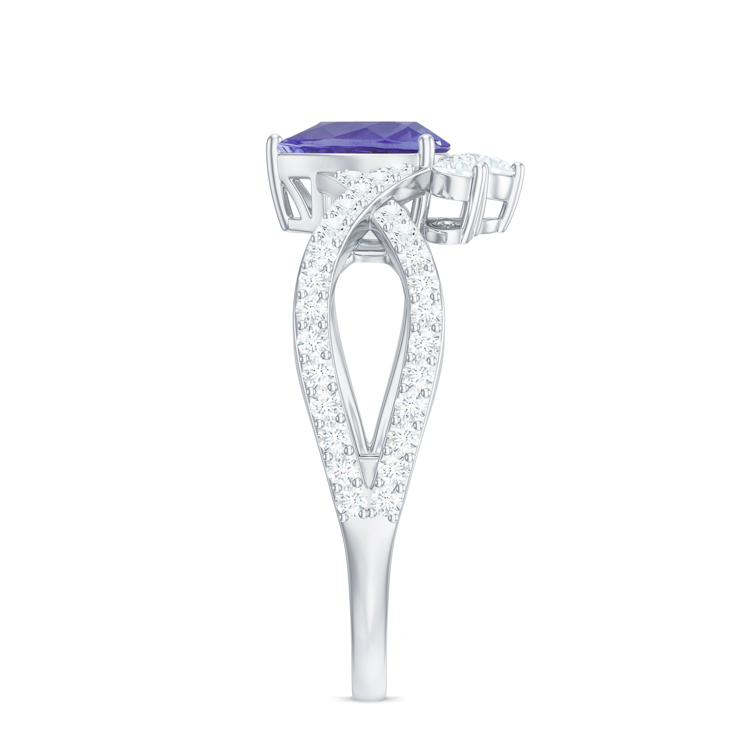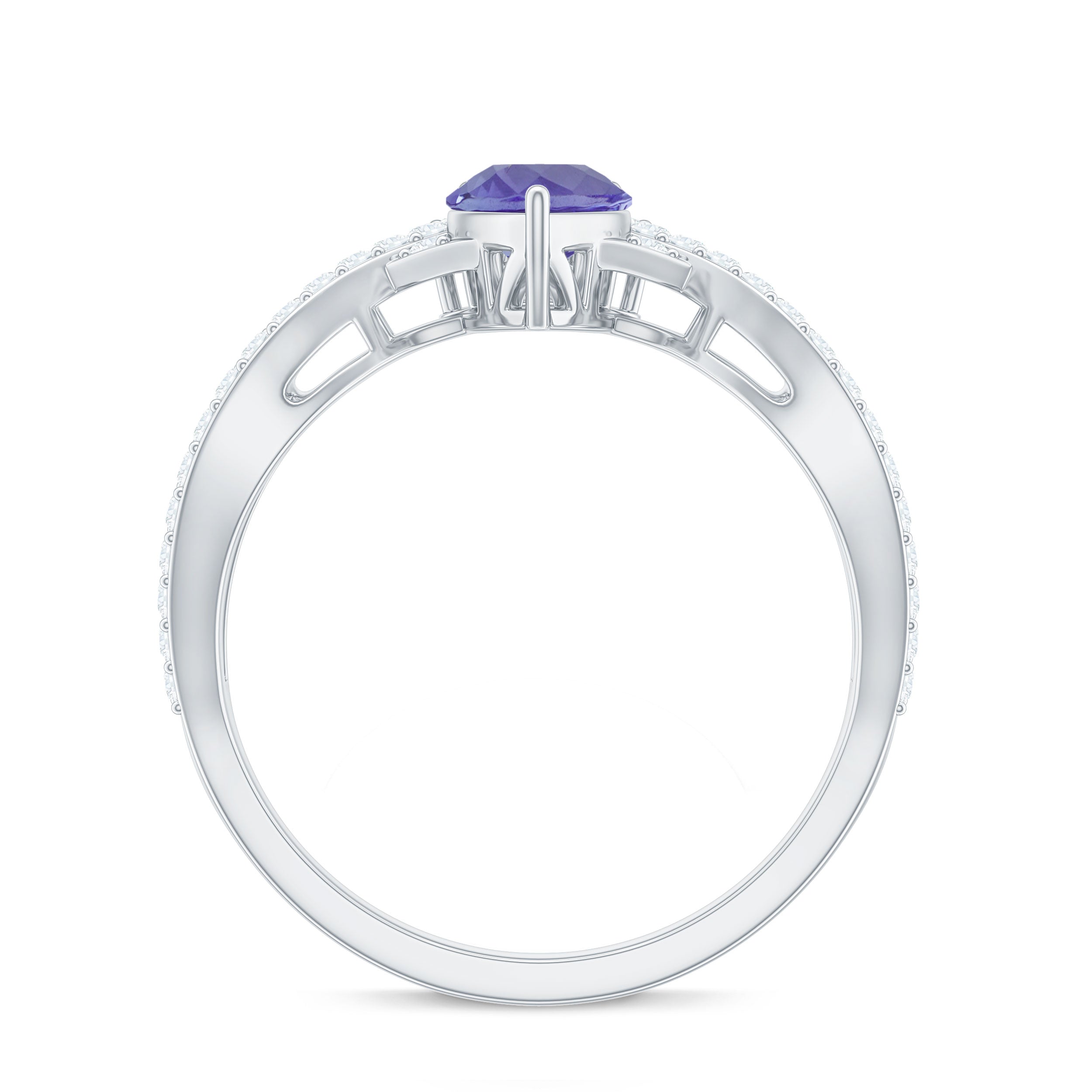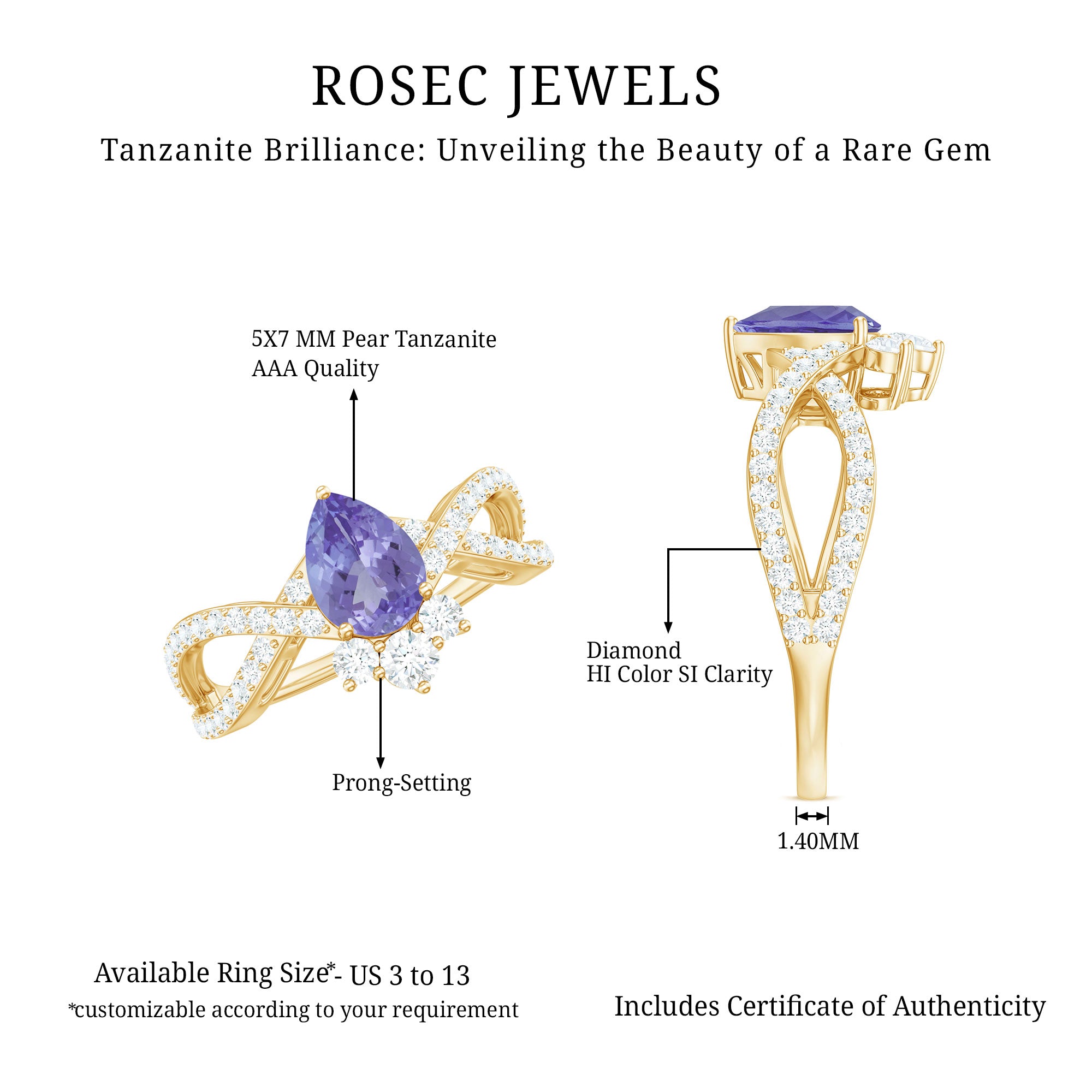 Pear Shape Tanzanite Solitaire Crossover Ring with Diamonds
