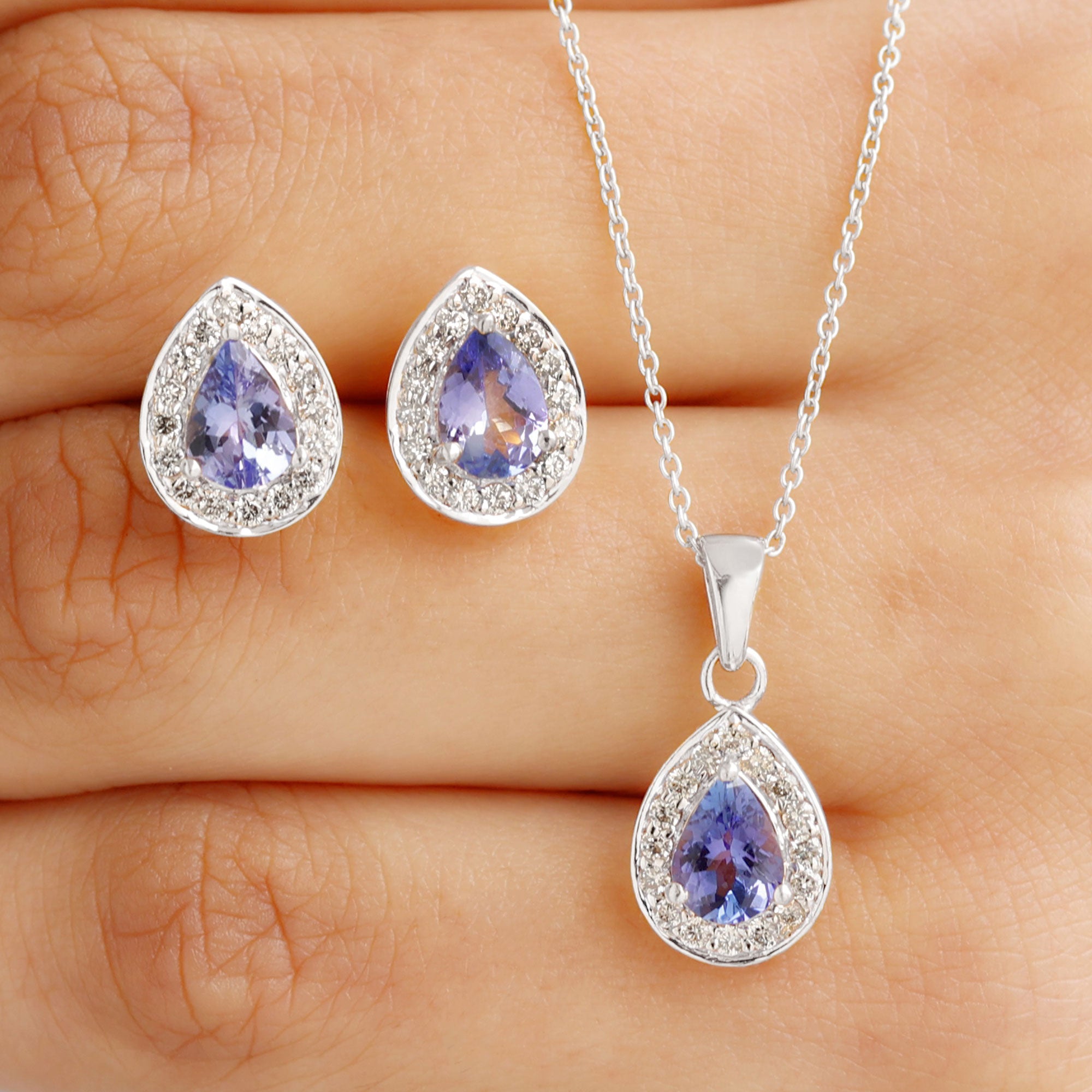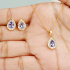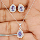 Pear Shape Tanzanite Teardrop Jewelry Set with Moissanite