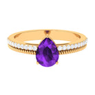 Pear Shaped Amethyst and Diamond Solitaire Ring with Twisted Rope