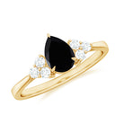 Pear Shaped Black Onyx Engagement Ring with Real Diamond Trio