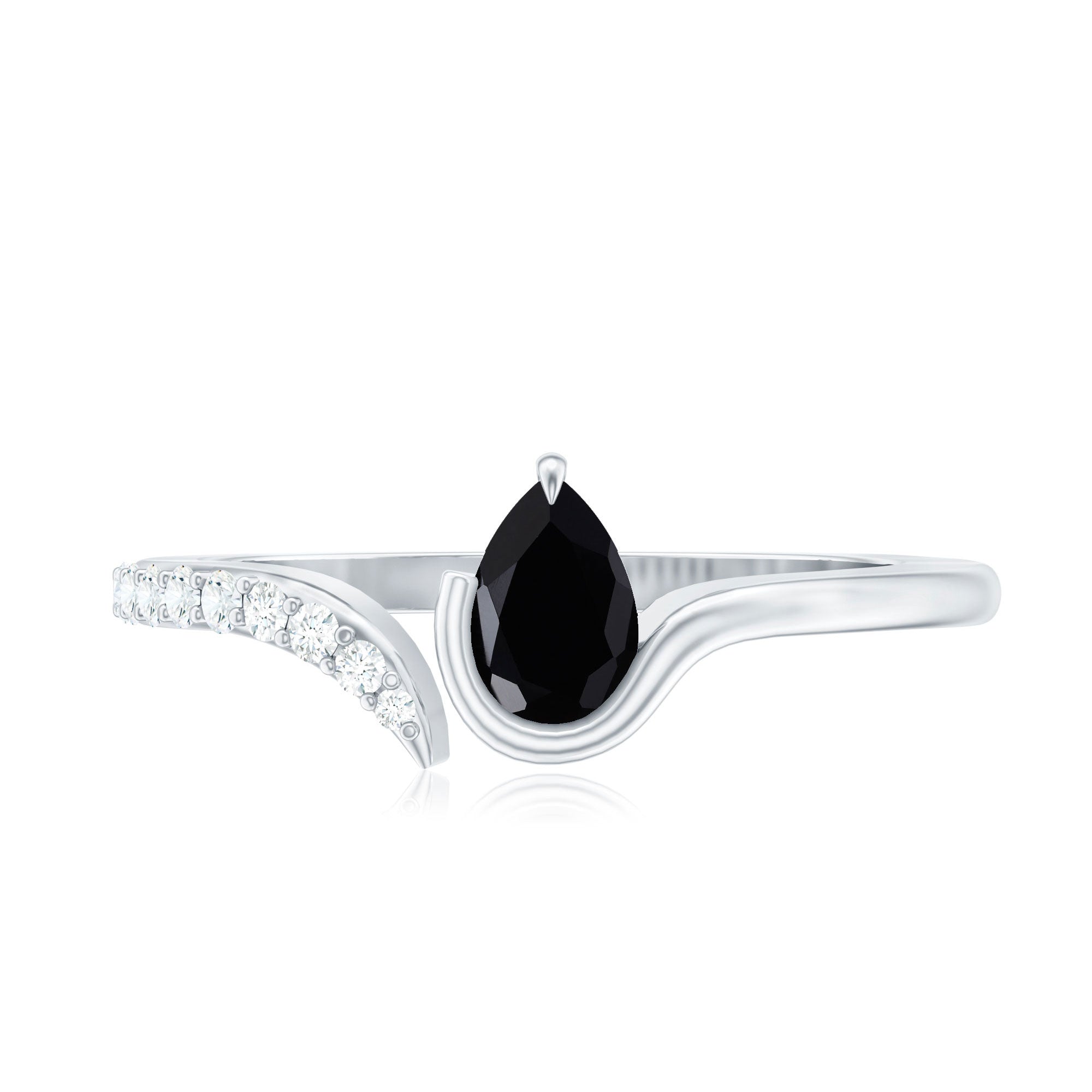 Pear Shaped Black Onyx Promise Ring with Diamonds