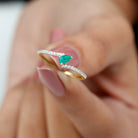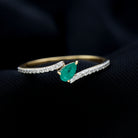 Pear Shaped Emerald and Diamond Promise Ring in Bypass Shank