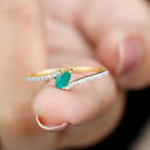 Mark your special moments with the beauty of this Emerald Promise Ring, made to express love and meaning in the most elegant way. At its center rests a 3X5 MM pear shaped emerald, held securely in prong setting and gently tilted for a distinctive look. The rich green color of the emerald stands for growth, harmony, and lasting affection, making it a perfect choice for someone special. The small round diamonds sit gracefully on the bypass band, adding a soft sparkle that highlights the emerald’s natural charm. The bypass design itself carries a special message, it represents two lives joining together while still moving forward side by side. Every curve of the Emerald and Diamond Ring reflects connection, unity, and balance. The pear shaped emerald shines as the heart of this design, while the smooth band brings a touch of modern style to its timeless appeal. It feels elegant yet simple, suitable for both everyday wear and special occasions. Whether given as a promise ring, a gift of love, or a symbol of a shared bond, this Pear Shaped Ring holds deep meaning. Designed with care and attention to detail, this Emerald Bypass Ring captures the beauty of love that grows stronger over time.