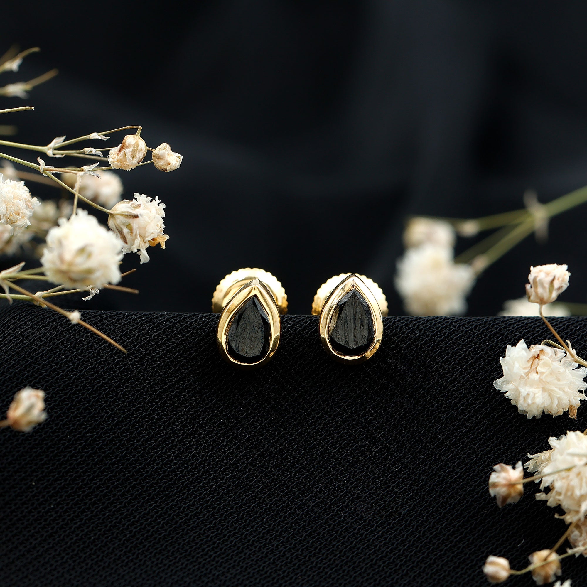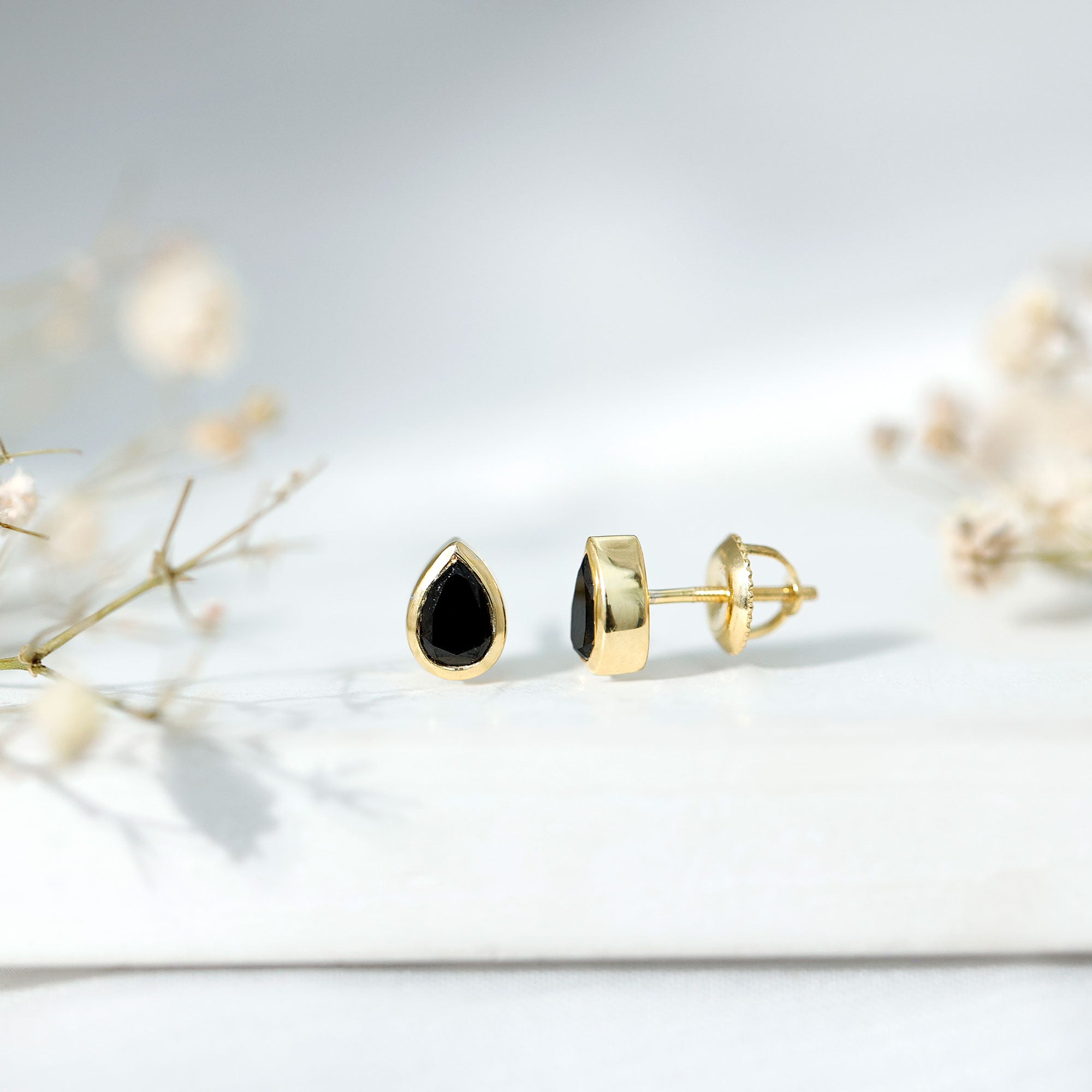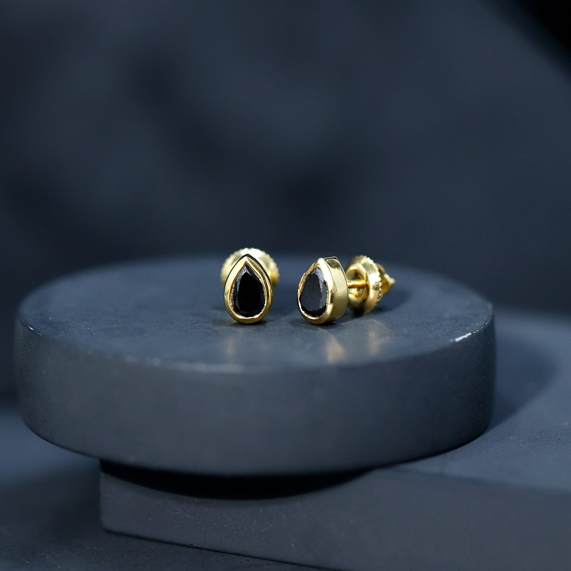 Add just the right amount of charm and elegance to your everyday style with these Black Diamond Stud Earrings. Designed for simplicity with a touch of bold charm, these studs are crafted in 14K yellow gold plated silver, making them the perfect balance of classic and contemporary. Each earring features a 5X7 MM pear shaped lab created black diamond, set in bezel setting that hugs the gem securely while keeping the look smooth and refined. These Teardrop Earrings are fitted with secure screw back closures, giving you that extra layer of comfort and peace of mind. Whether you are heading to the office, meeting friends, or stepping out for a dinner date, these Black Diamond Earrings stay in place effortlessly and complement everything from casual to formal looks. If you are looking for a meaningful gift, these Solitaire Studs make a thoughtful option, perfect for birthdays, anniversaries, or just to celebrate a personal moment. These Pear Shaped Earrings are designed to be a versatile go-to, understated, elegant, and full of personality.