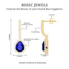 Pear Shaped Lab Grown Blue Sapphire and Diamond Hoop Drop Earrings