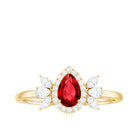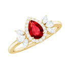 Make a bold statement with this stunning Lab Grown Ruby Engagement Ring, perfect for those who love elegance and style. At the heart of the Teardrop Engagement Ring sits a beautiful 4X6 MM pear shaped lab grown ruby, held securely in 3-prong setting. Surrounding the ruby is a sparkling diamond halo, adding brilliance and drawing attention to the vibrant center stone. The centerpiece is further enhanced by a trio of pear and marquise cut diamonds, carefully placed to highlight the rich red color of ruby and create a striking contrast. The combination of the AAAA quality ruby and the HI-SI quality diamonds gives the Cocktail Ring a modern yet timeless appeal, making it stand out from traditional designs. This Ruby and Diamond Ring is designed to celebrate love while offering a thoughtful choice with lab-grown ruby, an ethical and environmentally friendly alternative. Its elegant design makes it perfect for a proposal, engagement, or special gift, representing a meaningful commitment and shared moments.