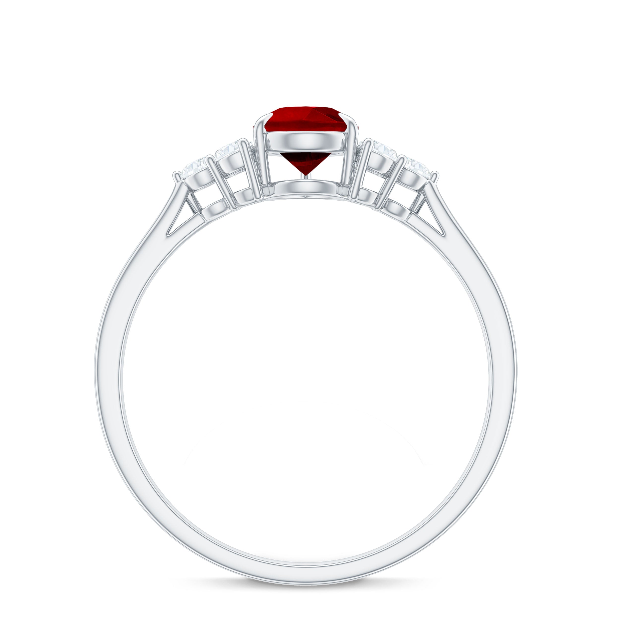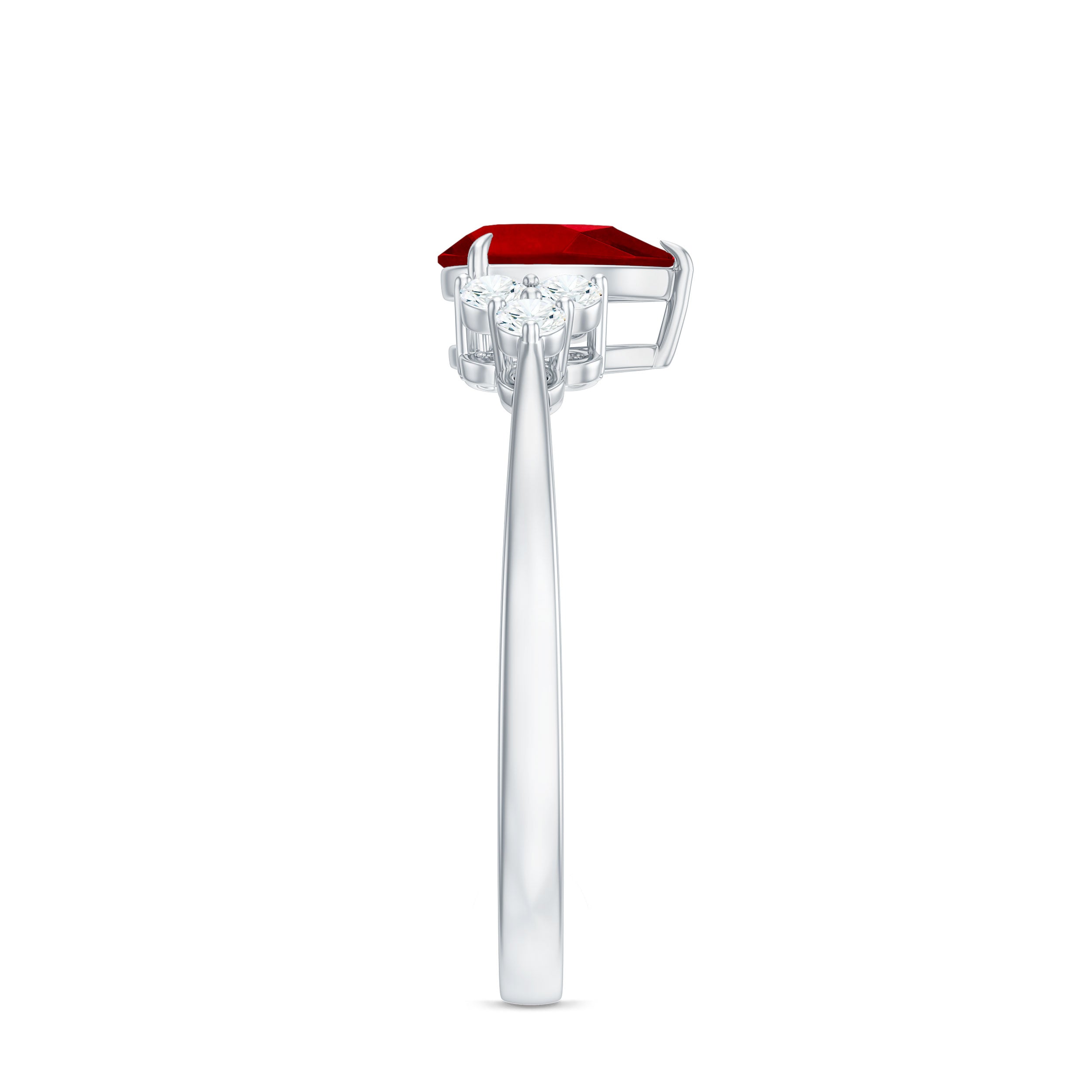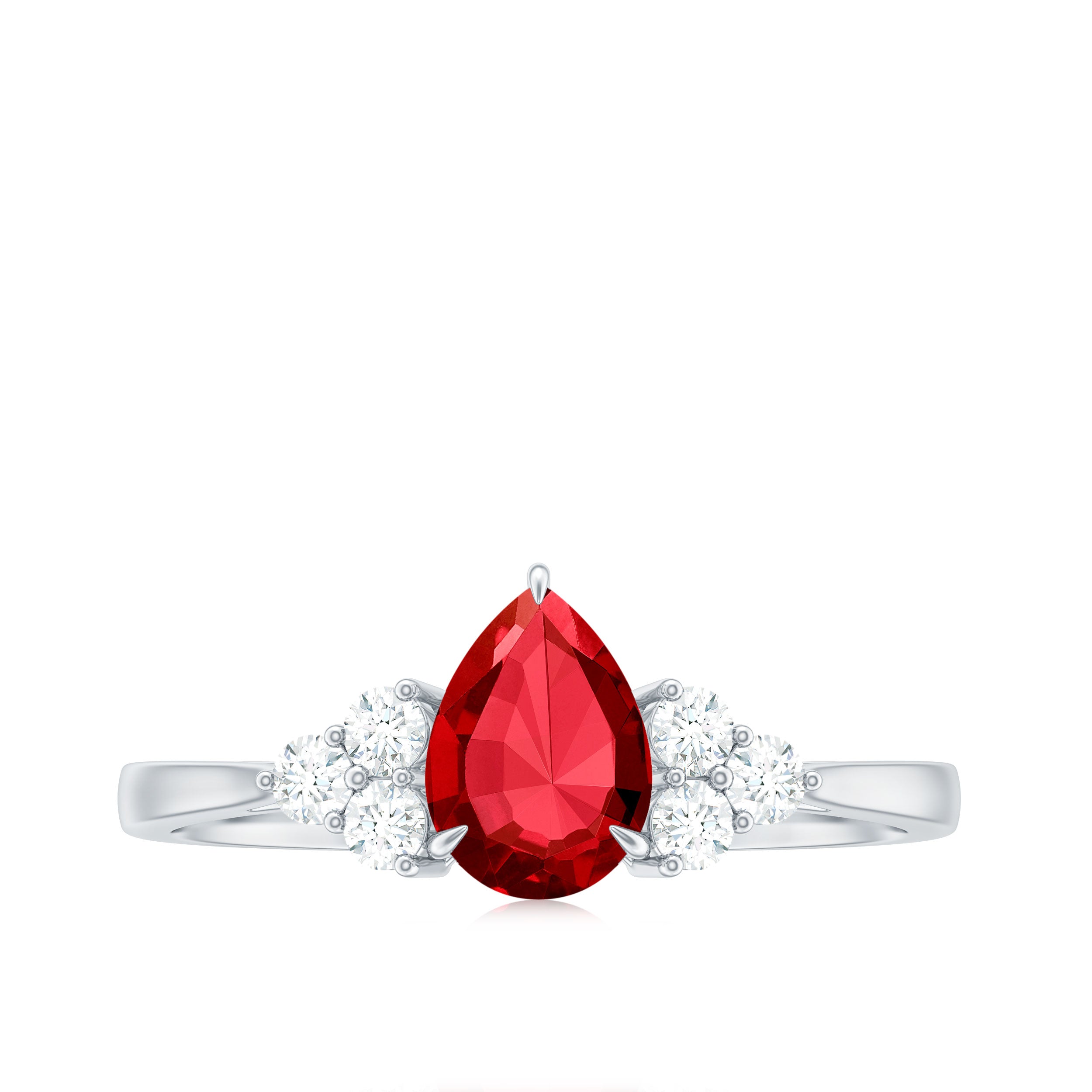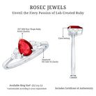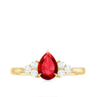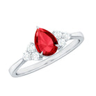 Pear Shaped Lab Ruby Engagement Ring with Diamond Trio