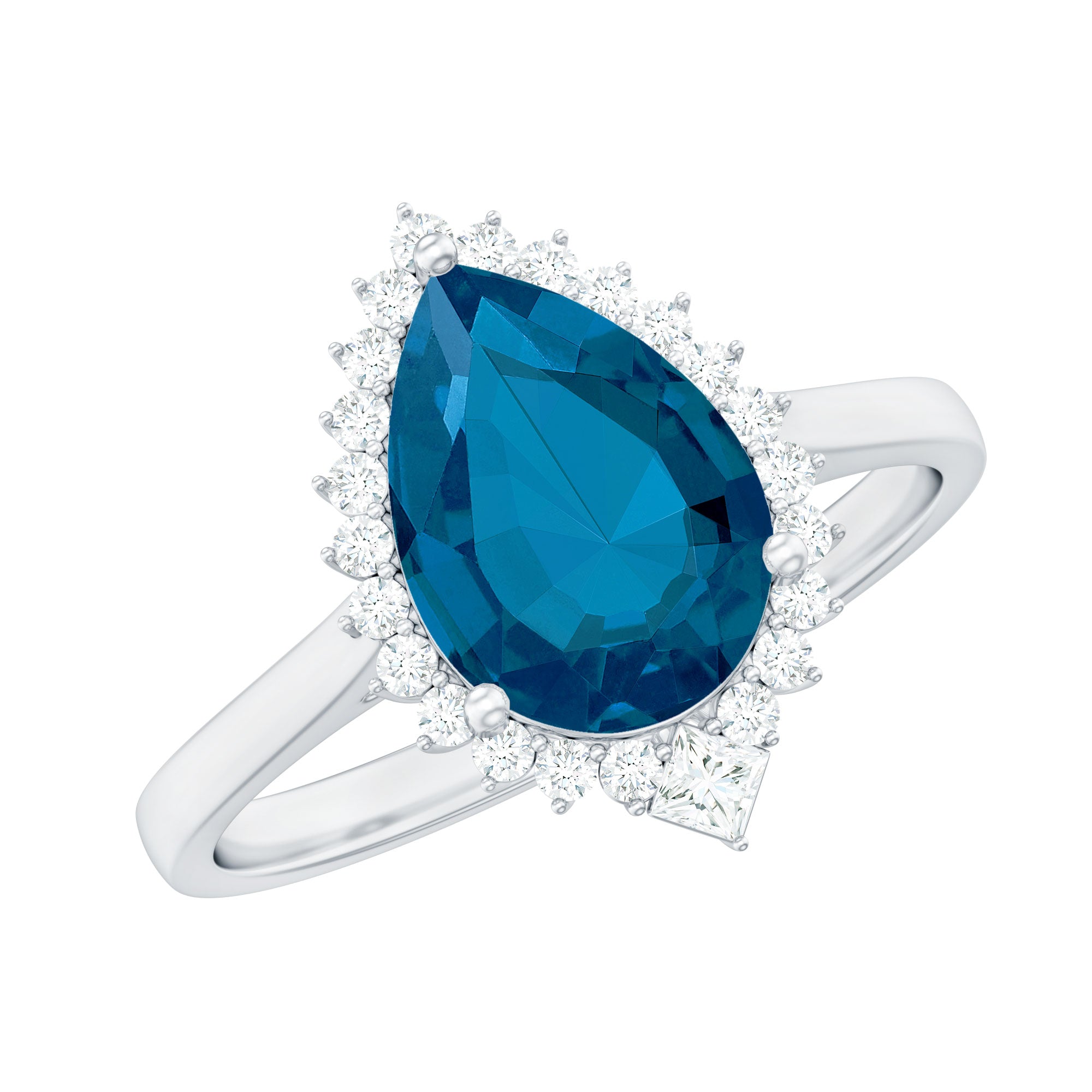 Pear Shaped London Blue Topaz and Diamond Statement Engagement Ring
