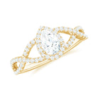 Pear Shaped Moissanite Crossover Engagement Ring with Halo