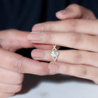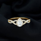 Dare to be different with this Pear Shaped Moissanite Engagement Ring, a striking tribute to modern romance and timeless elegance. Designed for the woman who embraces individuality, this Criss Cross Engagement Ring blends bold design with meaningful symbolism, making it a perfect statement of your forever love. At the center of this captivating piece lies a 5X7 MM pear cut moissanite, secured in prong setting. A halo of petite round moissanites encircles the center stone, enhancing its brilliance and adding a radiant glow that commands attention from every angle. The standout feature of this Teardrop Engagement Ring is its criss cross shank, a beautifully sculpted design lined with dazzling moissanite accents that shimmer with every movement. The crossover band represents two lives intertwining, reflecting unity, balance, and the beauty of a shared journey. Expertly handcrafted and set with D-VS1 quality moissanites, this Pear Engagement Ring ensures maximum sparkle with ethical luxury. Its delicate yet daring design makes it ideal for the bride-to-be who appreciates both tradition and contemporary flair. Presented in a luxurious jewelry box, this Halo Engagement Ring is ready to light up your forever moment.