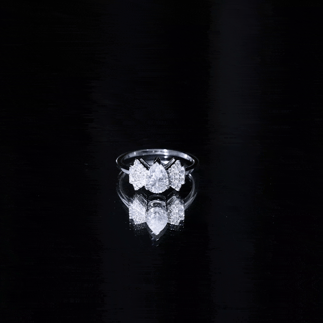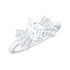 Make every proposal unforgettable with this dazzling Moissanite Engagement Ring, where elegance meets artistic charm. Crafted to capture the essence of romance and femininity, this Solitaire Ring features a captivating 5X7 MM pear shaped moissanite at the center, glimmering with intense fire and brilliance. The centerpiece is set in secure 3-prong setting, allowing maximum light to pass through the stone, enhancing its natural sparkle. What makes this Designer Engagement Ring truly enchanting is its bow-like design, formed by intricate clusters of round moissanite stones fanning out on either side of the center. The design evokes a perfect blend of sophistication and whimsy, making it a standout choice for someone who adores unique yet timeless styles. The polished band offers a sleek finish, ensuring all attention remains on the shimmering brilliance of the bow-inspired design. Whether you are planning the perfect proposal or looking for a special gift that symbolizes commitment, this Pear Shaped Engagement Ring is destined to become a cherished treasure. Customizable in various sizes and metal color options, it offers a personalized touch to your once-in-a-lifetime moment. Classic with a twist, it is a radiant promise wrapped in sparkle.