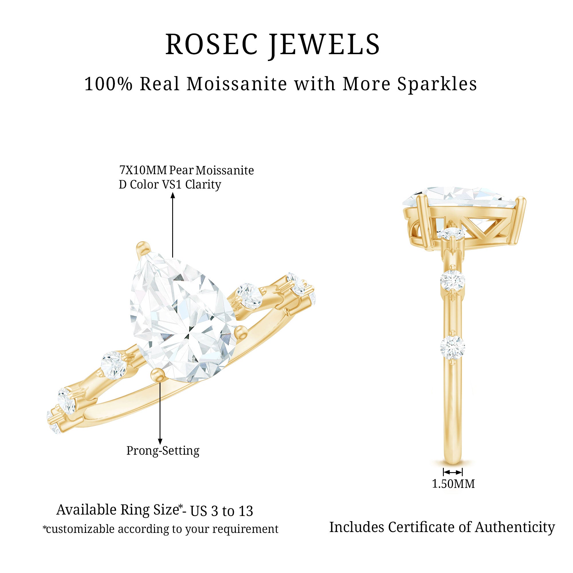 Pear Shaped Moissanite Engagement Ring with Spaced Accent
