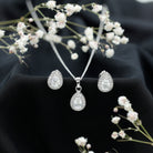 Pear Shaped Moissanite Halo Necklace and Earrings Set