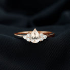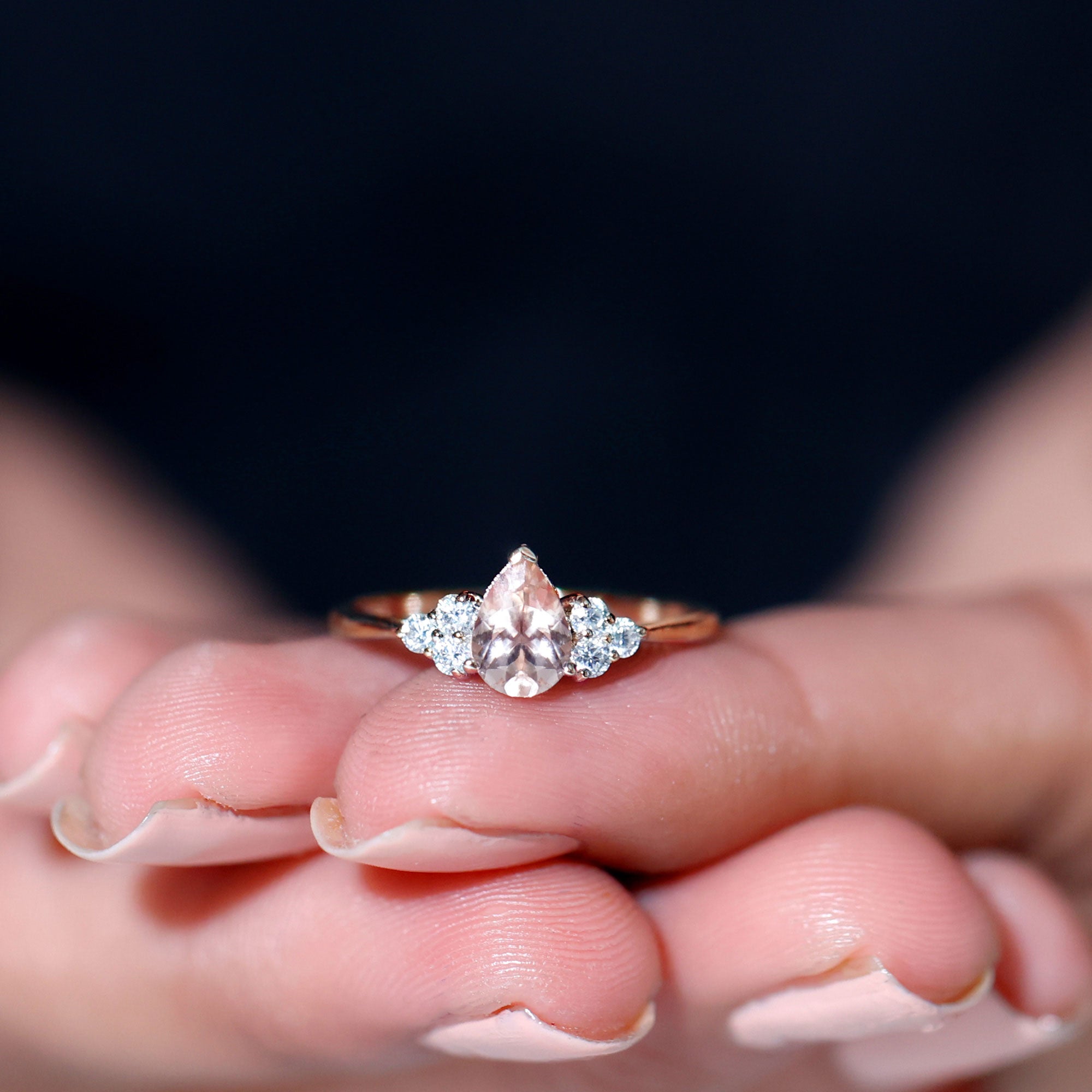 Pear Shaped Morganite Solitaire Ring with Diamond Trio