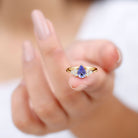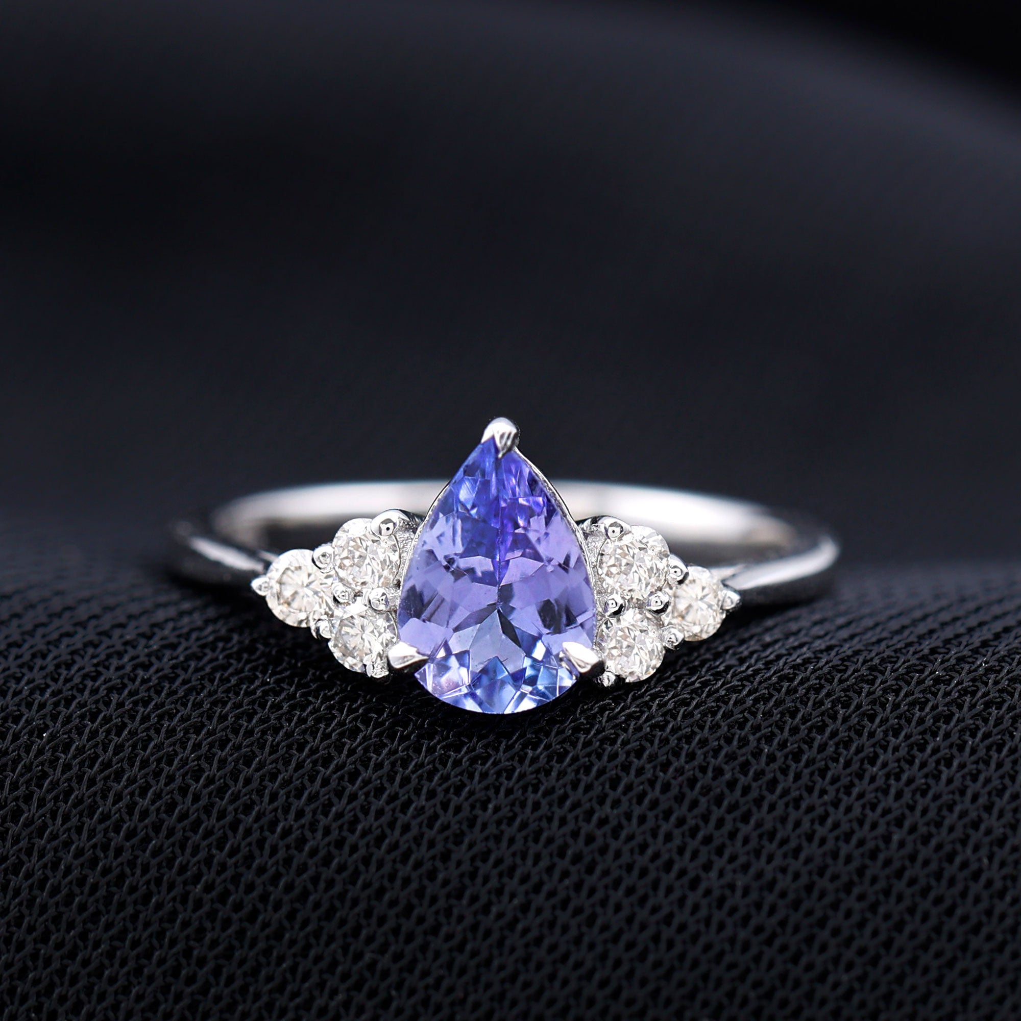 Pear Shaped Tanzanite Solitaire Ring with Diamond Trio