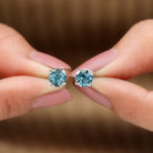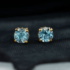 Peg Head Set Sky Blue Topaz and Diamond Solitaire Stud Earrings