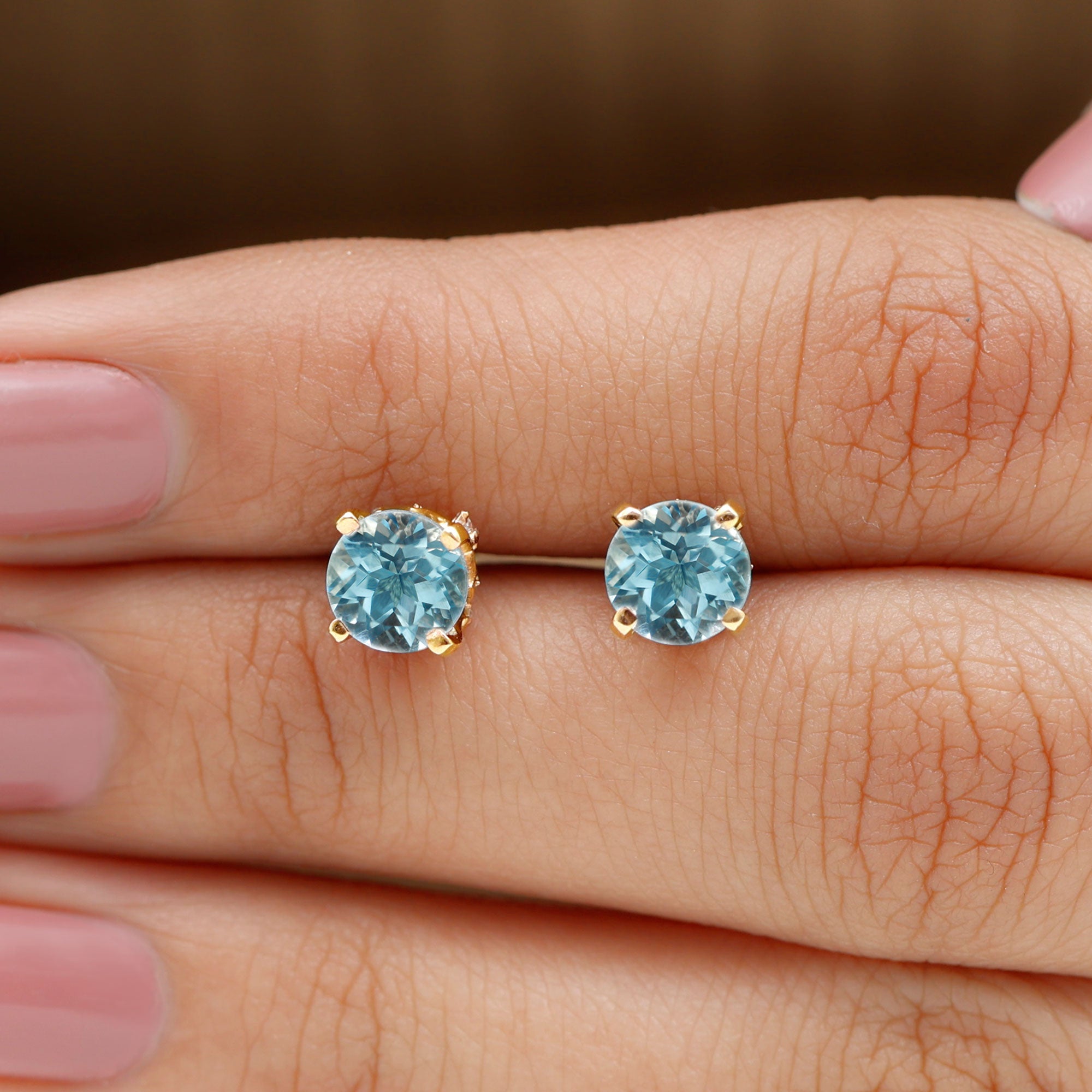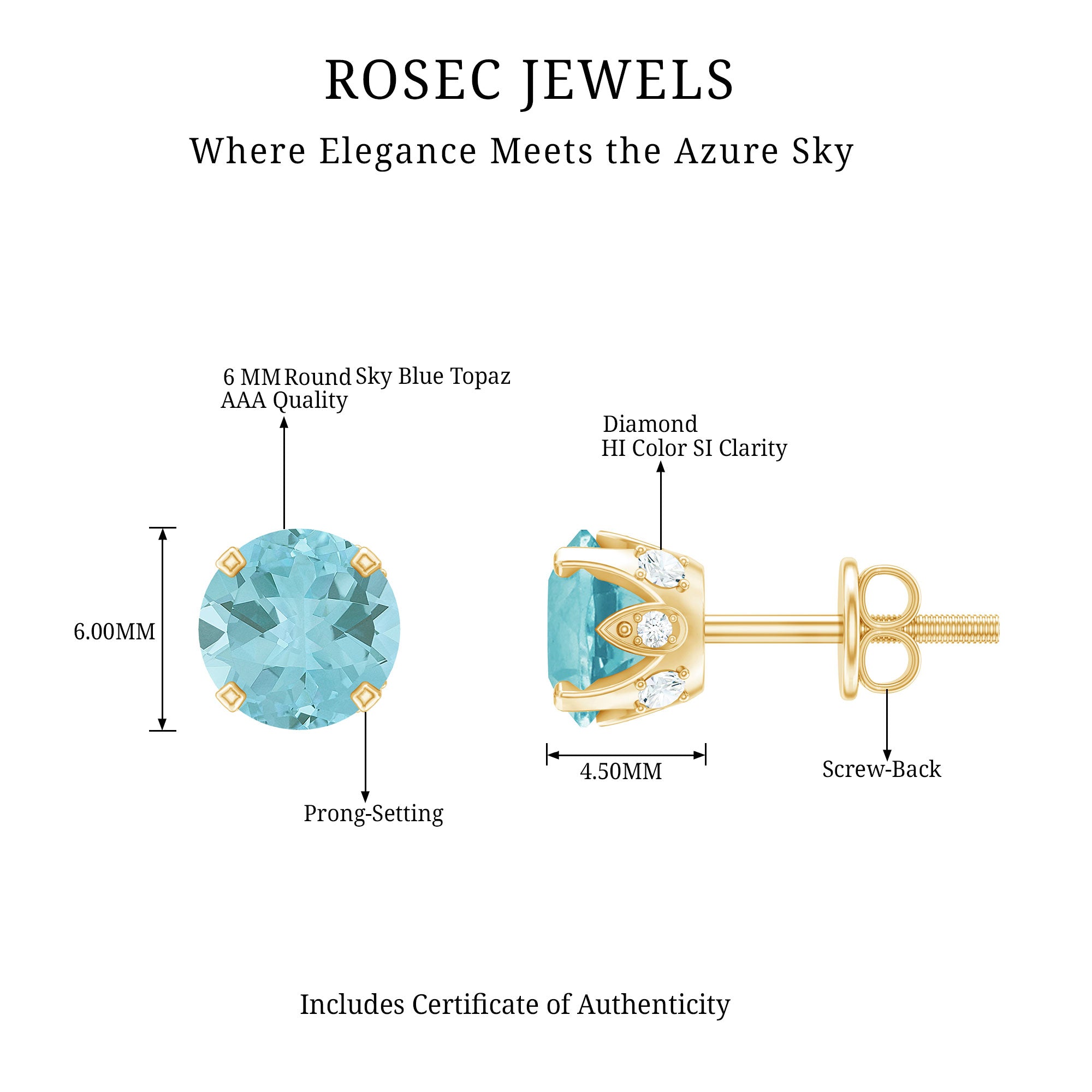 Prepare to be enchanted by the mesmerizing beauty of this Beautiful Stud Earring. Adorned with a captivating Round Shape Sky Blue Topaz set in a secure Prong Setting, and complemented by shimmering Diamond stones also set in Prong Setting, these earrings exude elegance and charm. They epitomize luxury and sophistication. Embrace the allure of these stunning earrings, perfect for adding a touch of timeless elegance to any outfit.