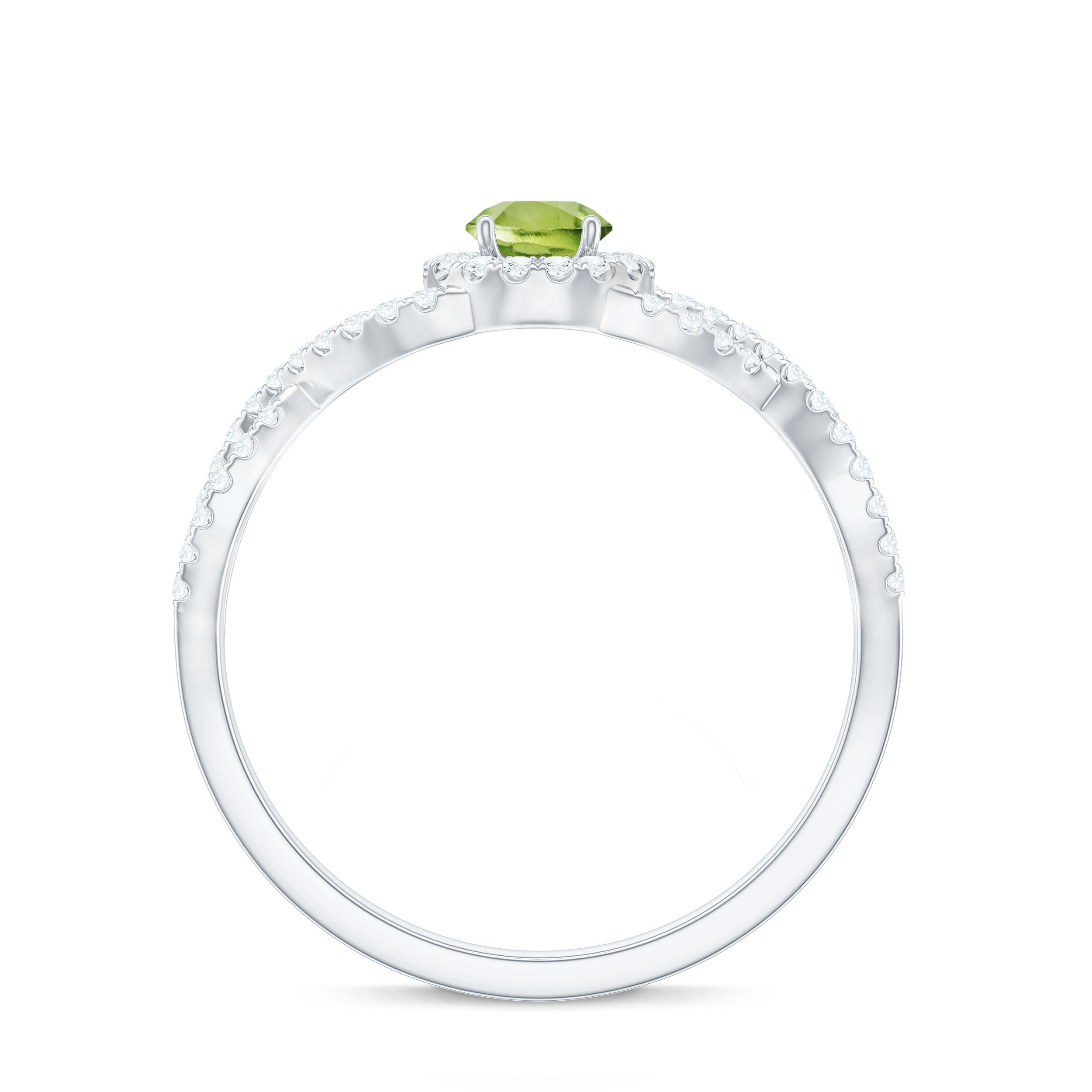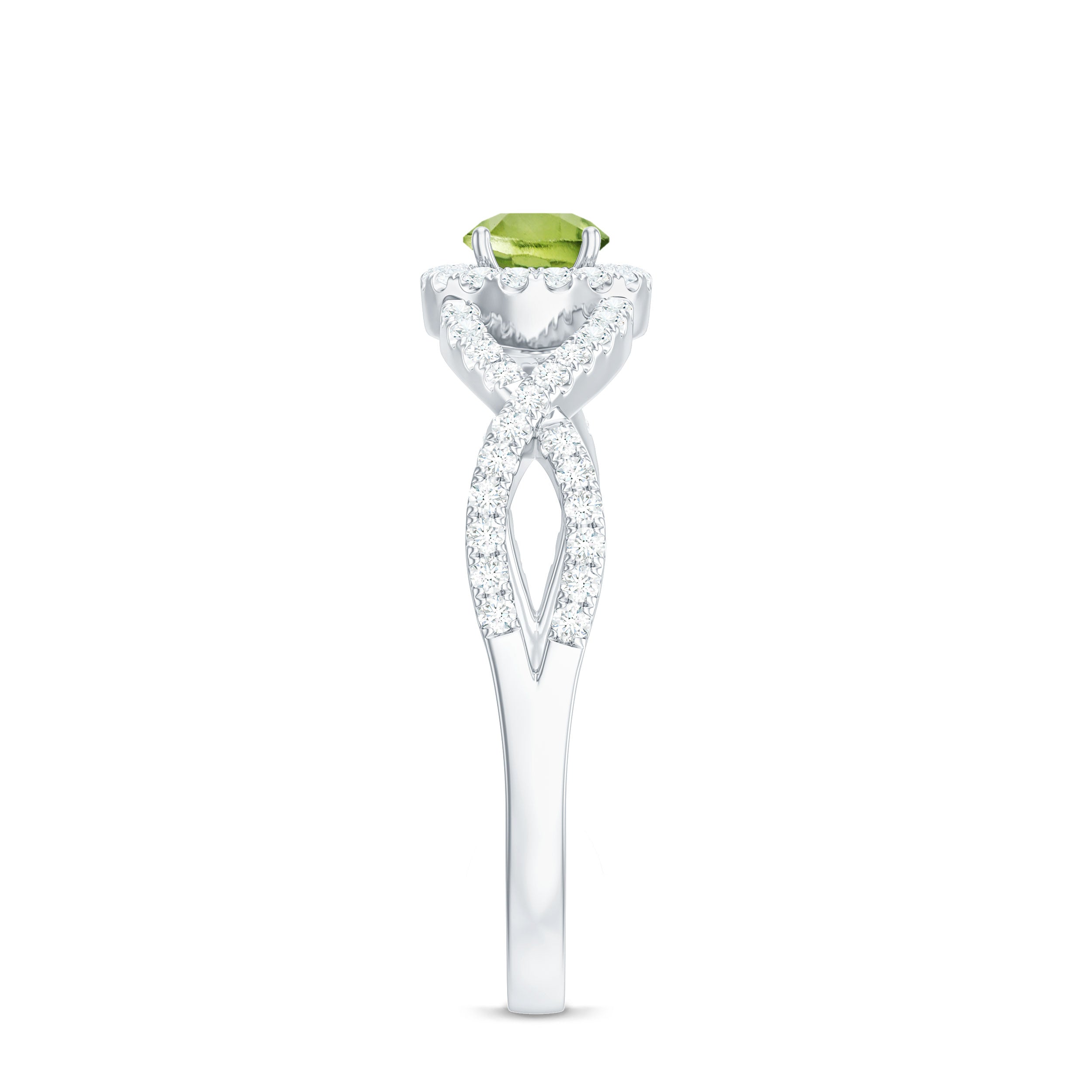 Peridot and Diamond Criss Cross Engagement Ring