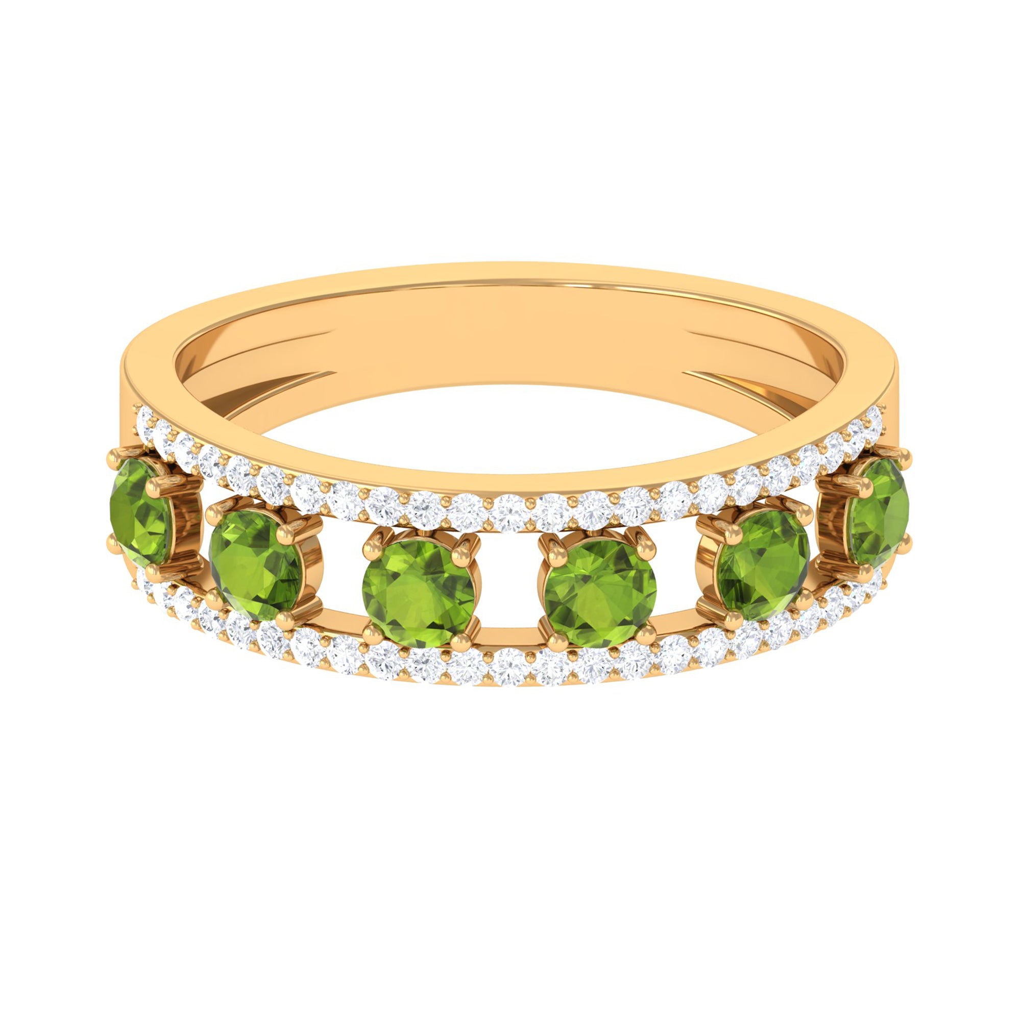 Celebrate your loves journey with this enchanting Peridot Anniversary Ring adorned with shimmering Diamond gemstones. Meticulously crafted to exude elegance, this ring serves as a timeless reminder of your enduring commitment. Whether its a milestone celebration or a heartfelt gesture, this Anniversary Ring is a dazzling and cherished token of your love.