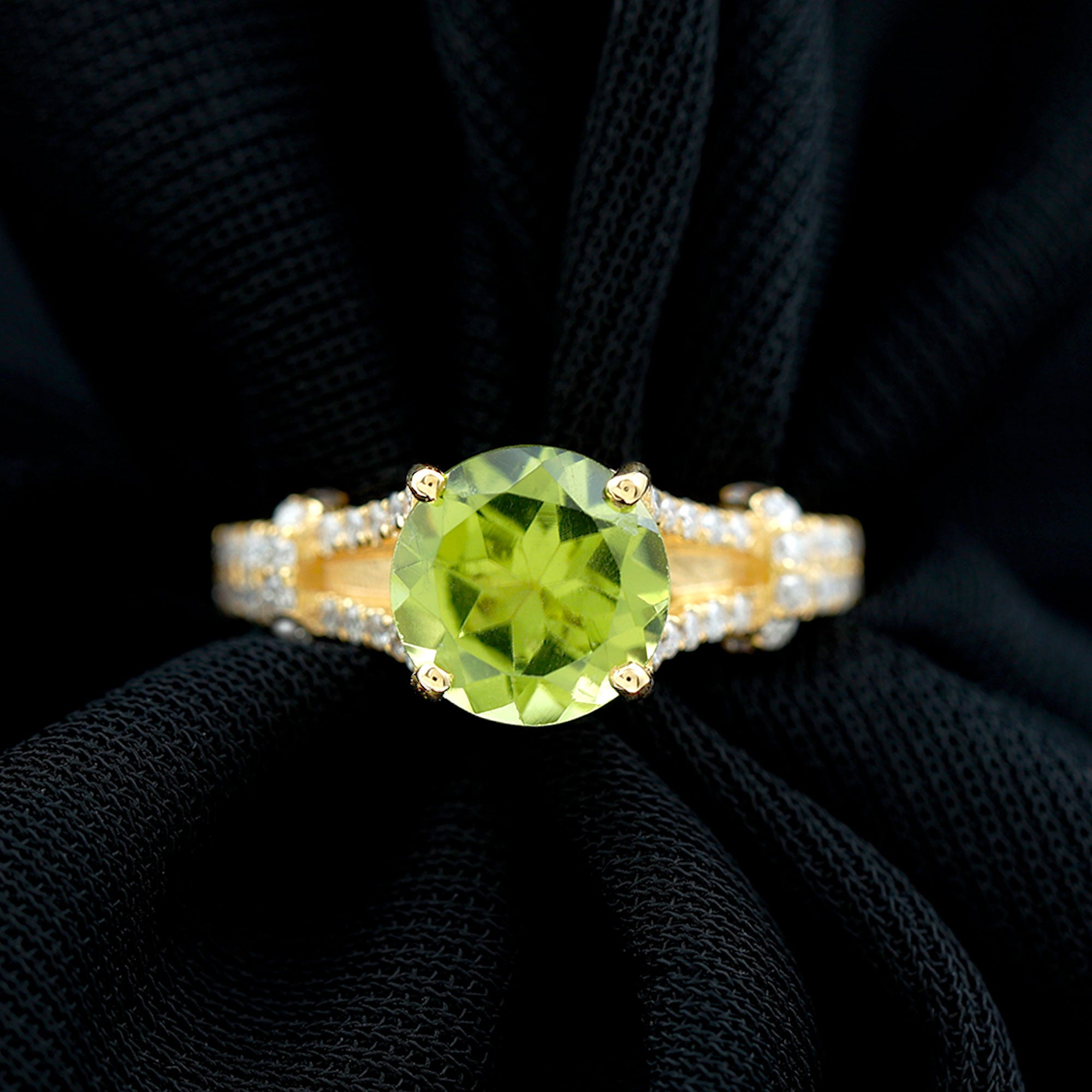 Peridot Solitaire Engagement Ring with Moissanite in Split Shank