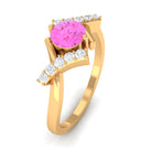 This stunning promise ring features a vibrant pink sapphire center stone with sparkling Diamond stones. The pink sapphires feminine hue adds a touch of romance and sweetness to the ring, while the Diamond stones adds glamour and sophistication. This ring is both durable and beautiful, making it a perfect symbol of love and commitment for any occasion. Whether as a promise ring or a special gift for a loved one, this ring is sure to make a lasting impression.