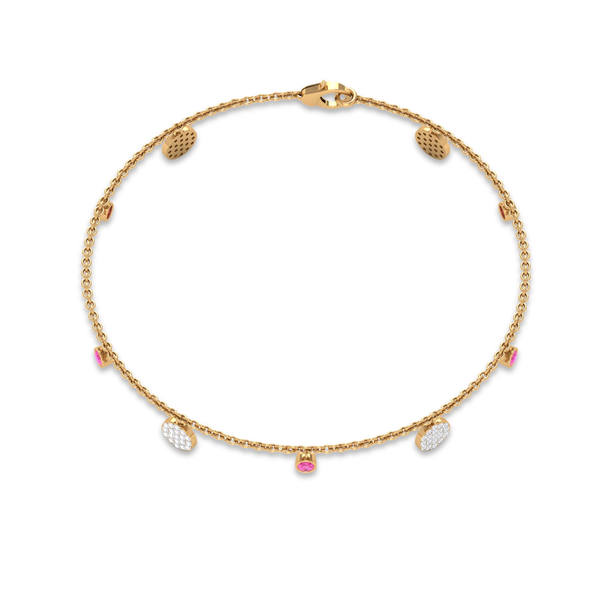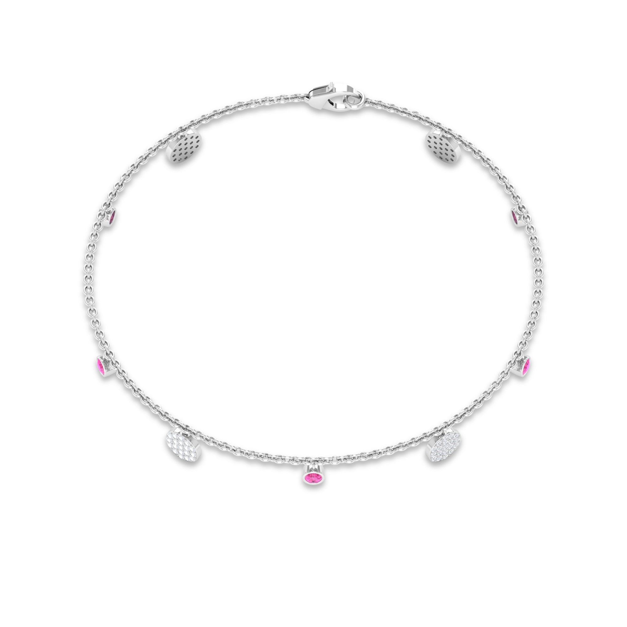 Pink Sapphire and Diamond Disc Chain Charm Bracelet