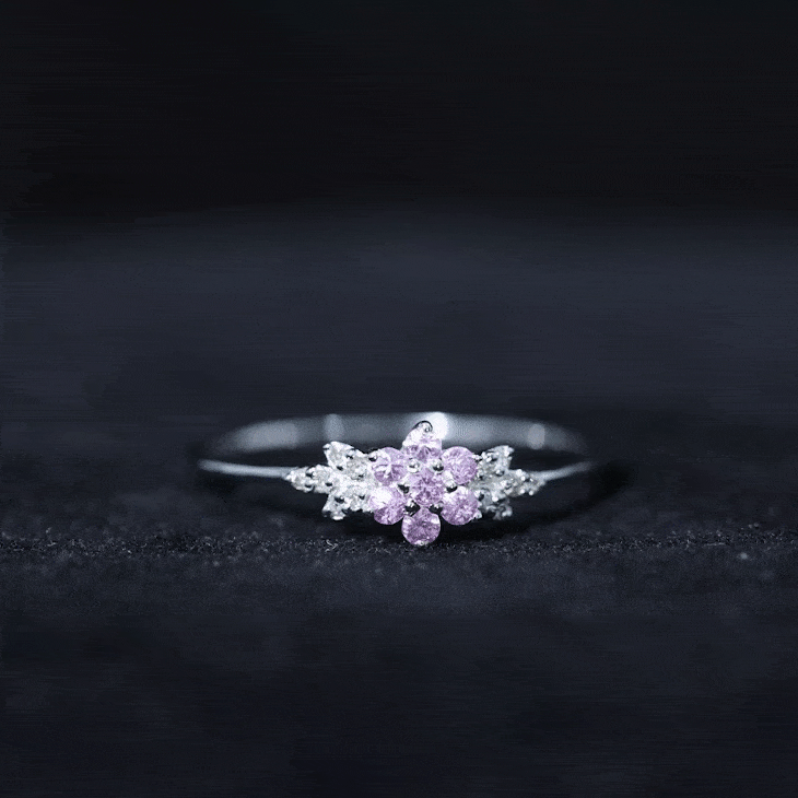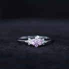 Pink Sapphire Flower Cluster Promise Ring with Diamond