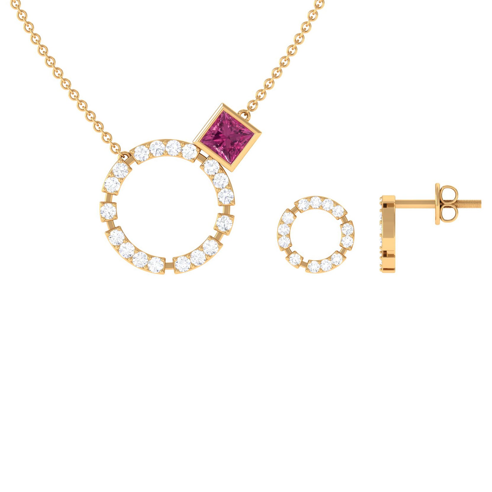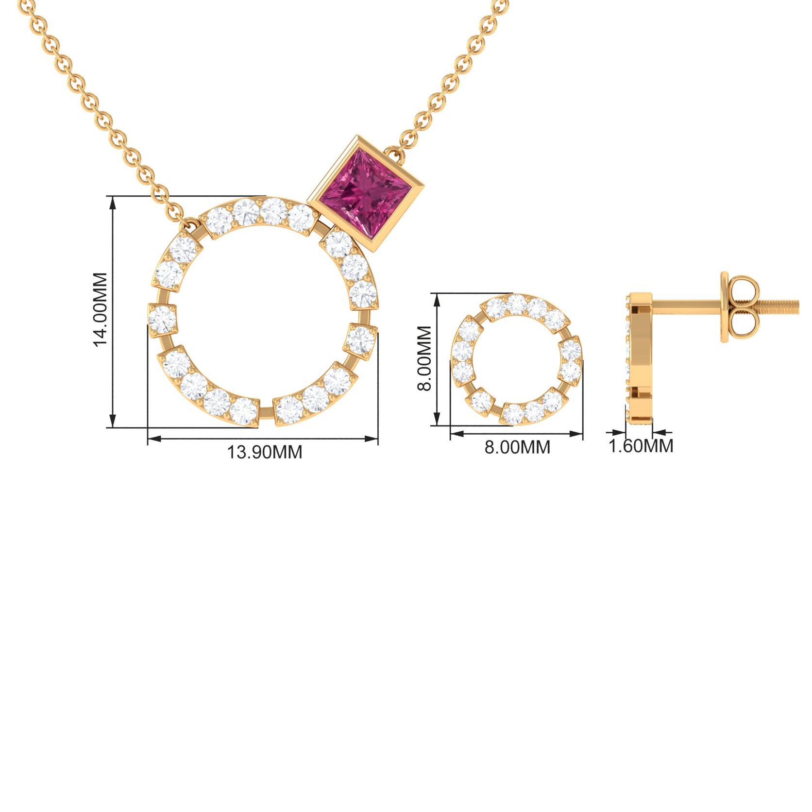 Grab this Eternity Jewelry Set for your special one, embellished with Round Shape Diamonds studded on an open circle design while a Princess Cut Pink Tourmaline studded in Bezel Setting. This Jewelry Set will complement your casual or special looks. Why wait for a special occasion to surprise your lady love? Get this Jewelry Set for your beloved as a present for her.