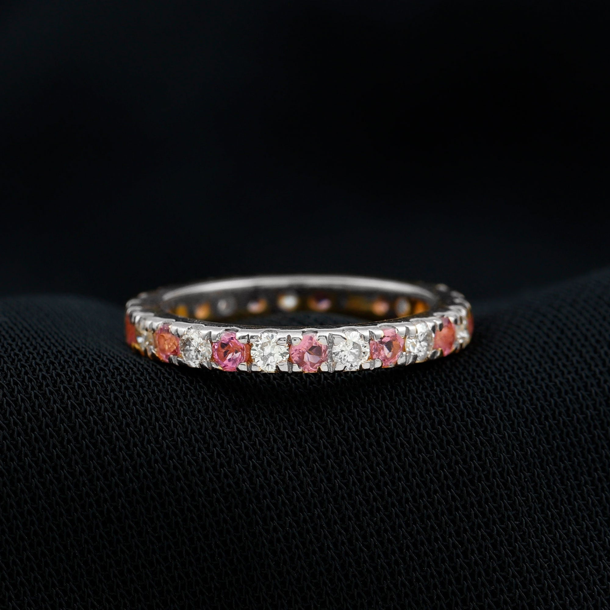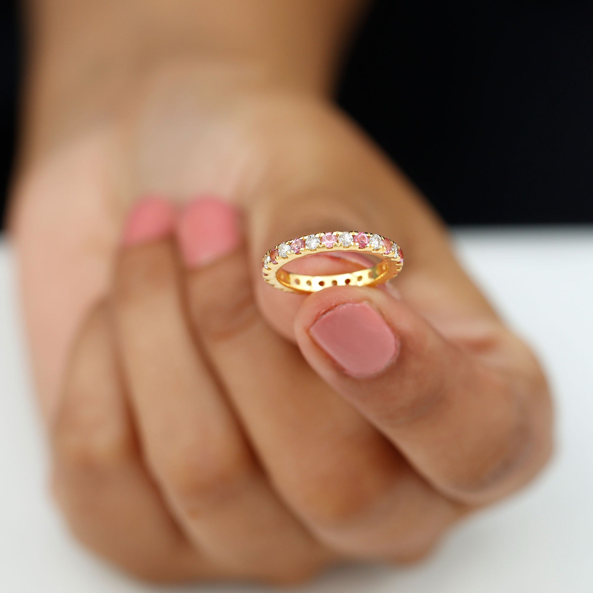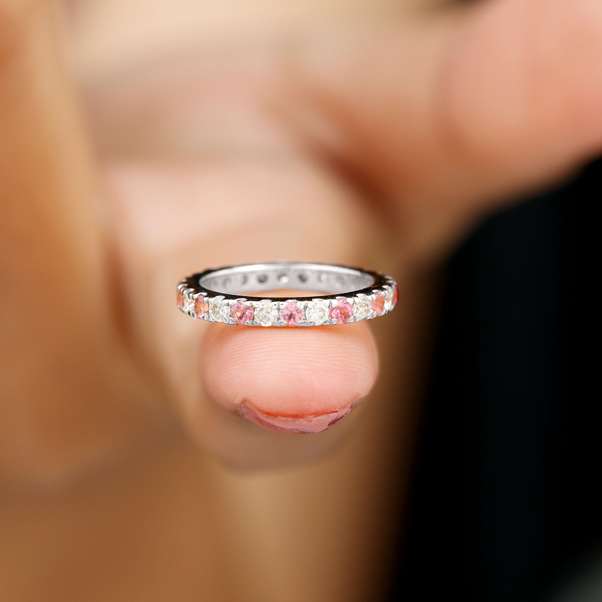 Our passion is delivering happiness through stunning gemstone jewelry, and the Exquisite Pink Tourmaline and Diamond Stackable Ring is a shining example. This captivating gemstone band ring is bound to take your focus with its enduring elegance. Seize the chance to wear and display this enchanting piece, and claim it as your own, confident that it will generate smiles and praise everywhere you venture.