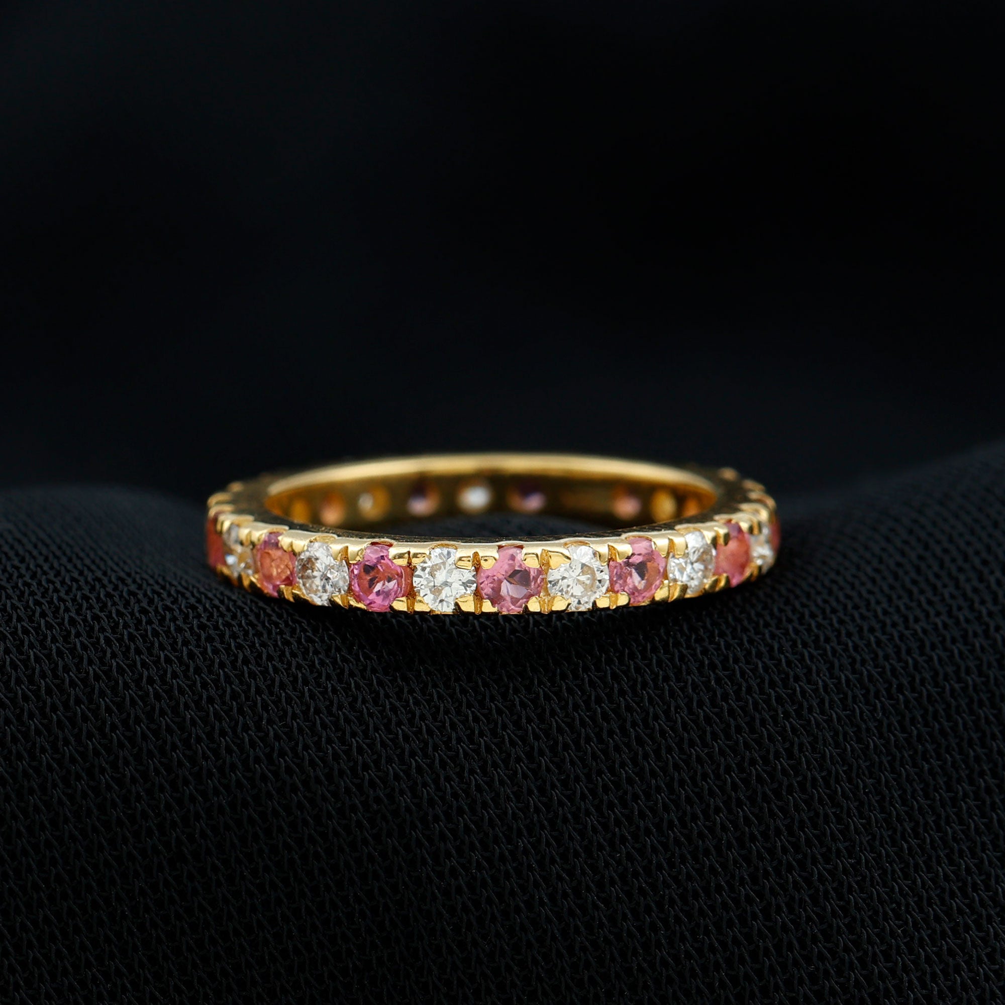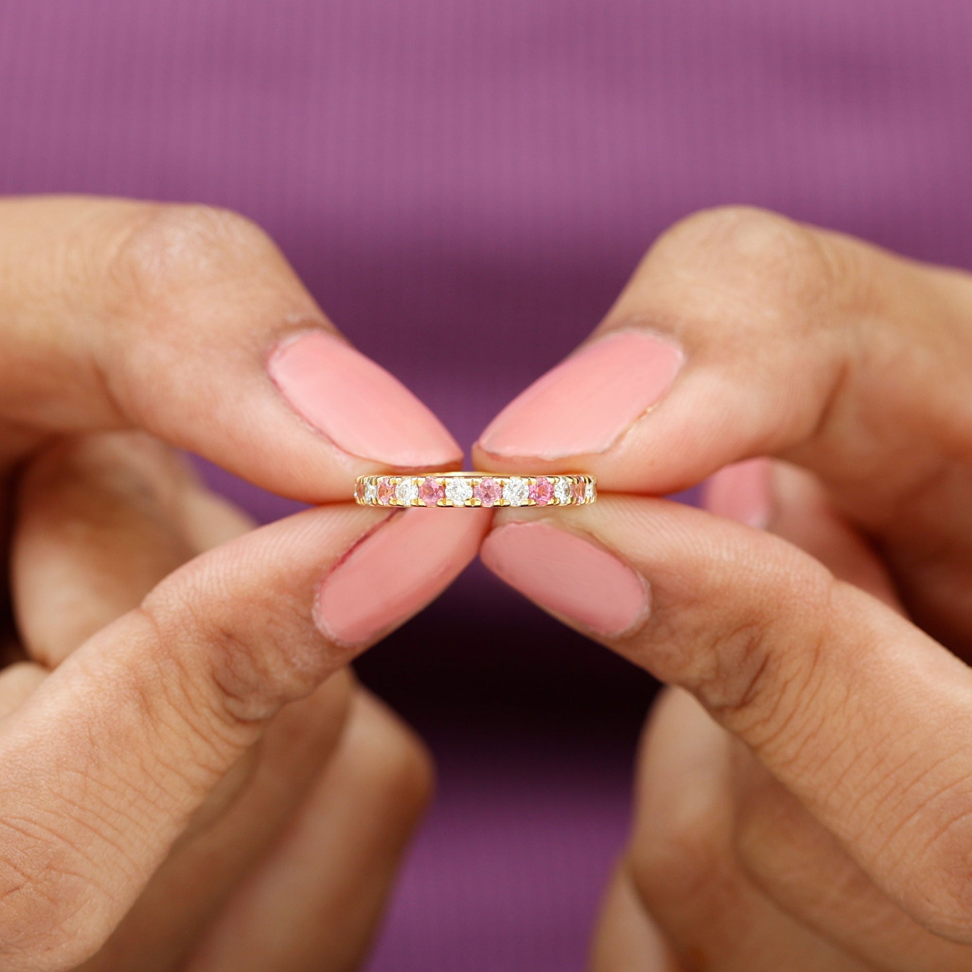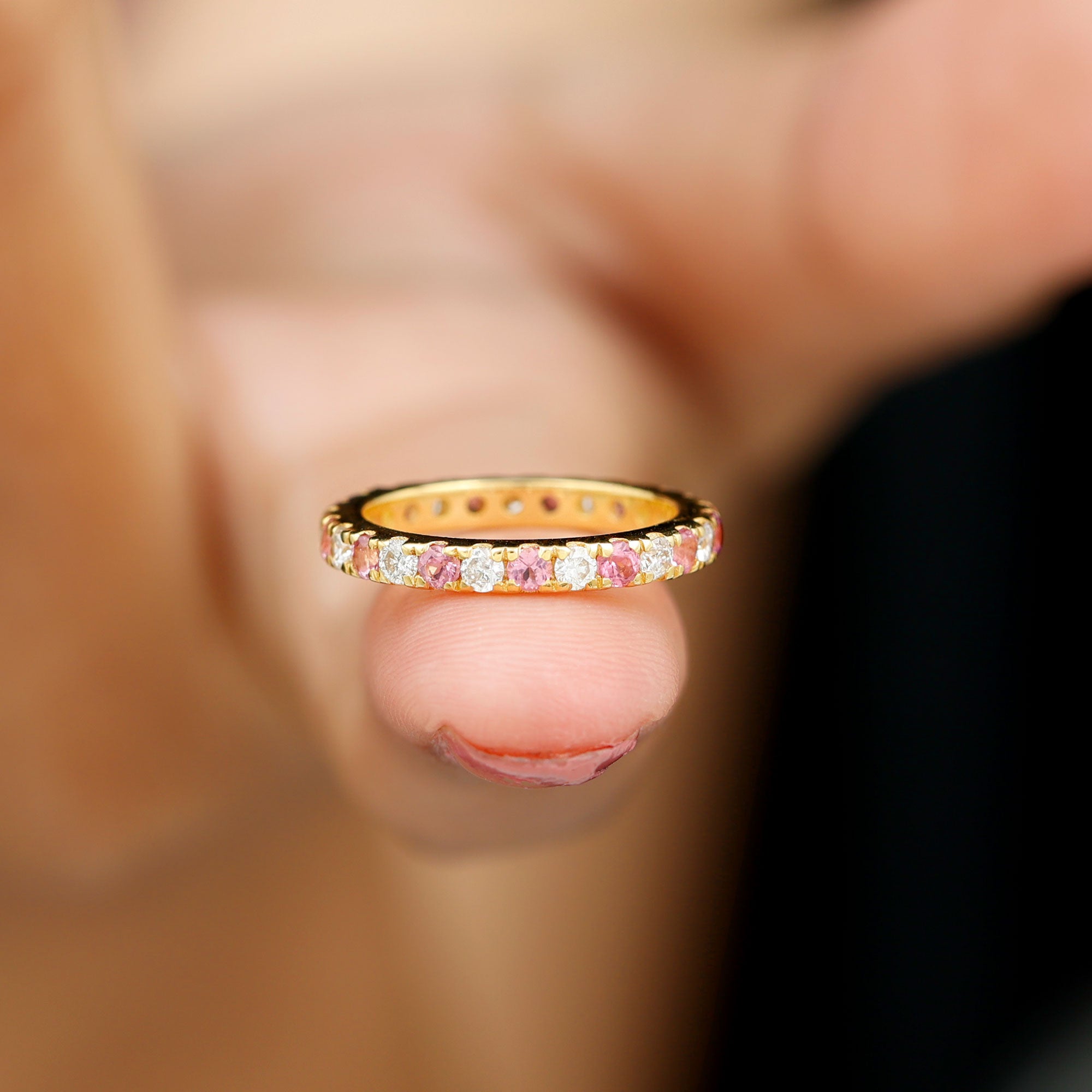 Our passion is delivering happiness through stunning gemstone jewelry, and the Exquisite Pink Tourmaline and Diamond Stackable Ring is a shining example. This captivating gemstone band ring is bound to take your focus with its enduring elegance. Seize the chance to wear and display this enchanting piece, and claim it as your own, confident that it will generate smiles and praise everywhere you venture.
