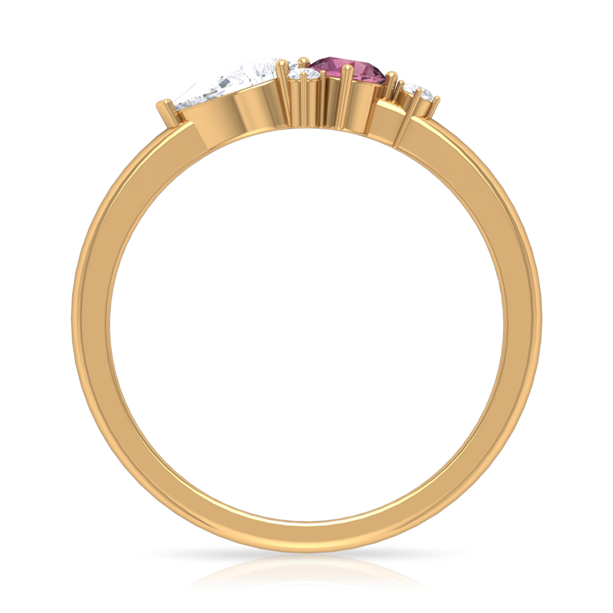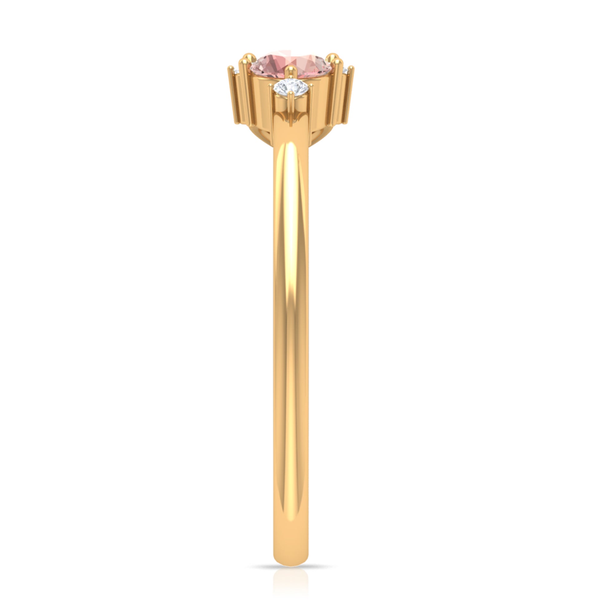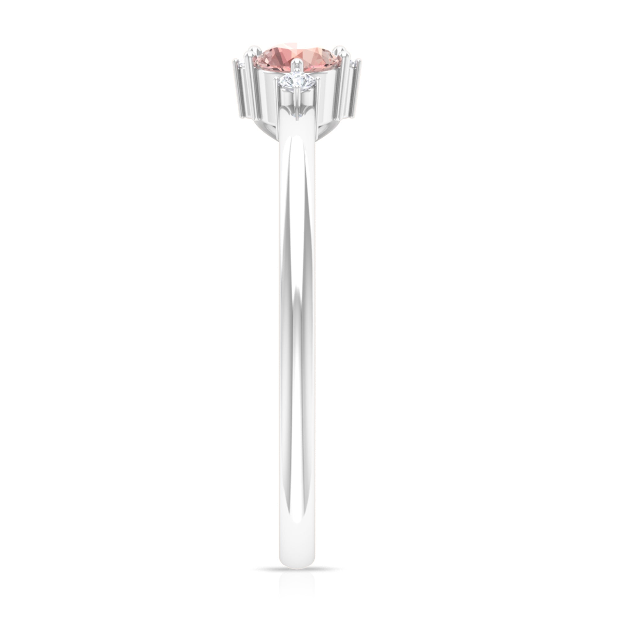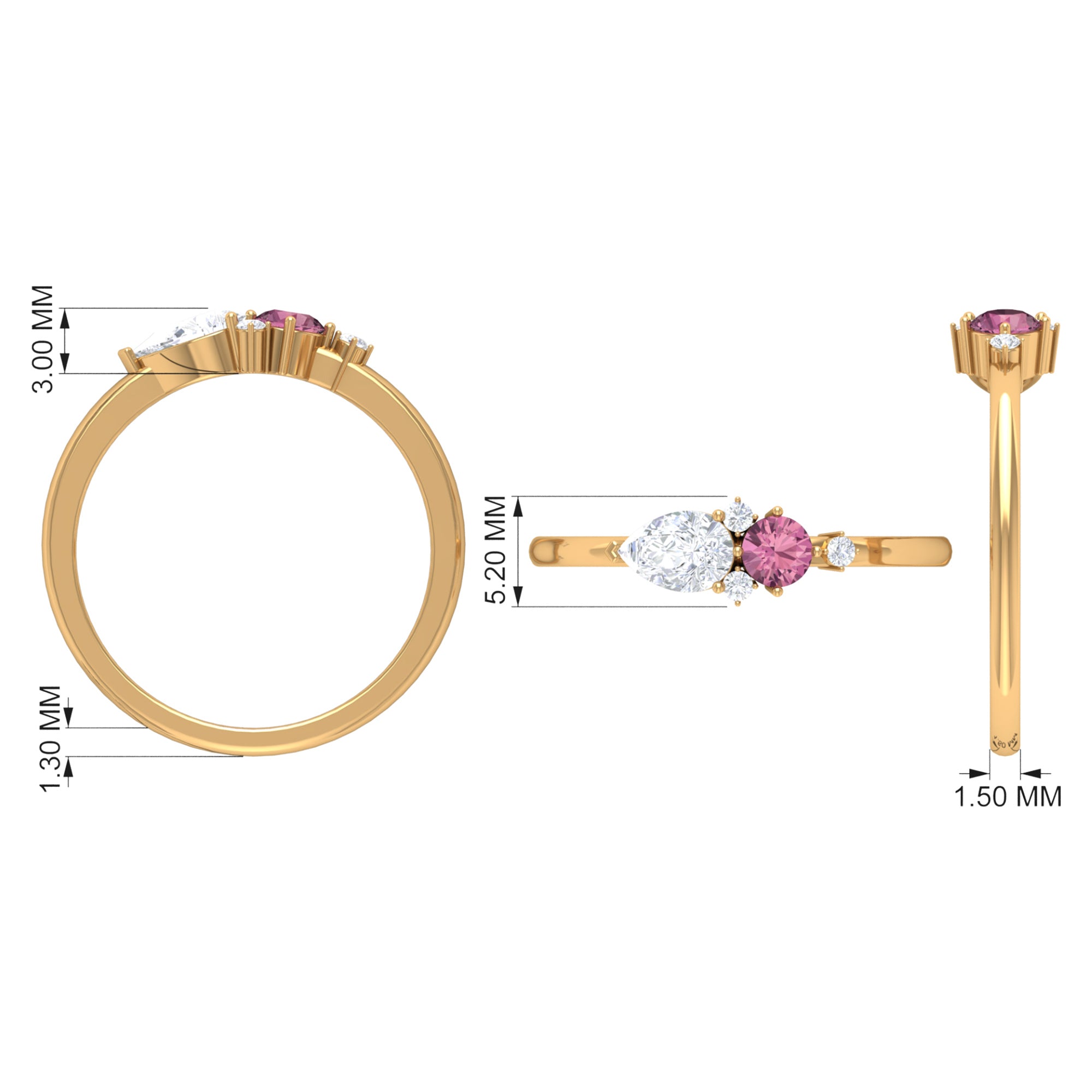 The stunning Cluster Promise Ring is embellished with Round Shape Pink Tourmaline, while Pear and Round Shape Moissanite secured in Prong Setting set as a cluster. Sway her away by getting this gorgeous Pink Tourmaline Ring for her as a Birthday Gift or Anniversary Gift, she would surely adore it for her whole life.