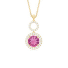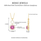 Embrace your inner diva and showcase your unique style with this extraordinary Drop Necklace. It features a stunning Pink Tourmaline Solitaire encircled by a glistening Moissanite Halo. The allure is further enhanced by an Open Circle Pattern adorned with sparkling Moissanite stones, creating an exquisite and captivating piece of jewelry thats sure to turn heads.