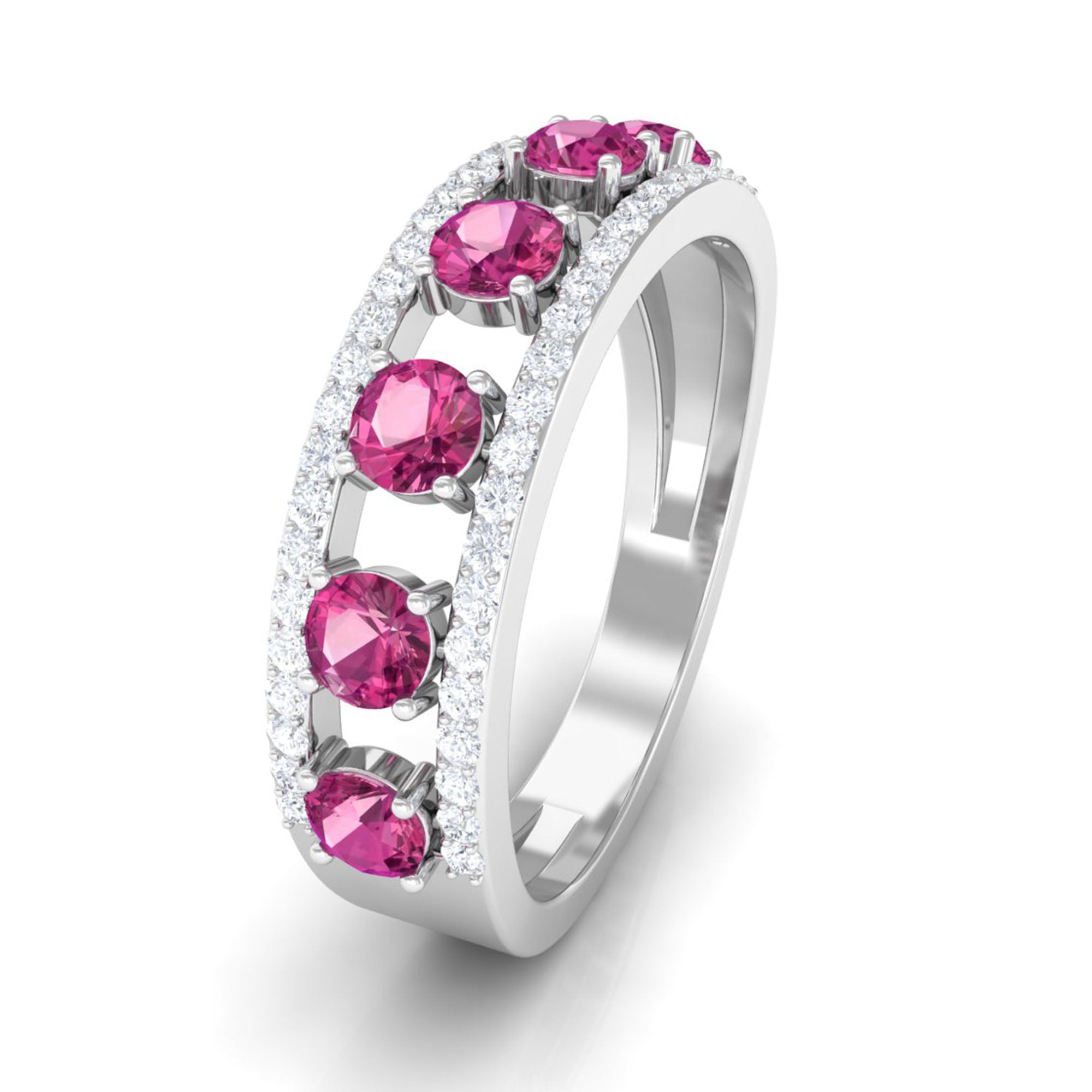 Celebrate your love with this Pink Tourmaline Anniversary Ring. Sparkling Diamond gemstones add a touch of brilliance to this special occasion.
