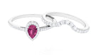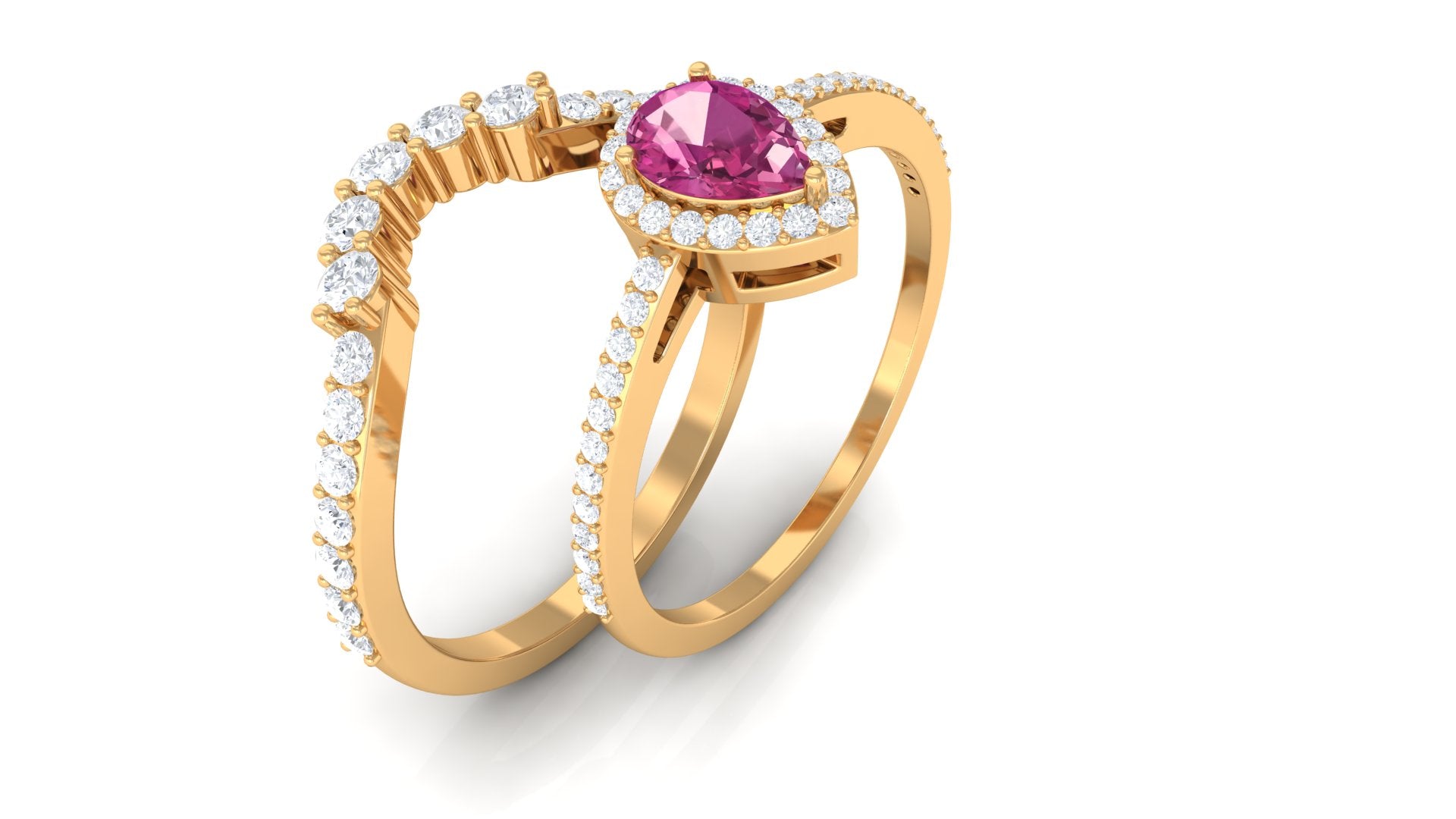 Pink tourmaline Designer Teardrop Ring Set with Moissanite Halo