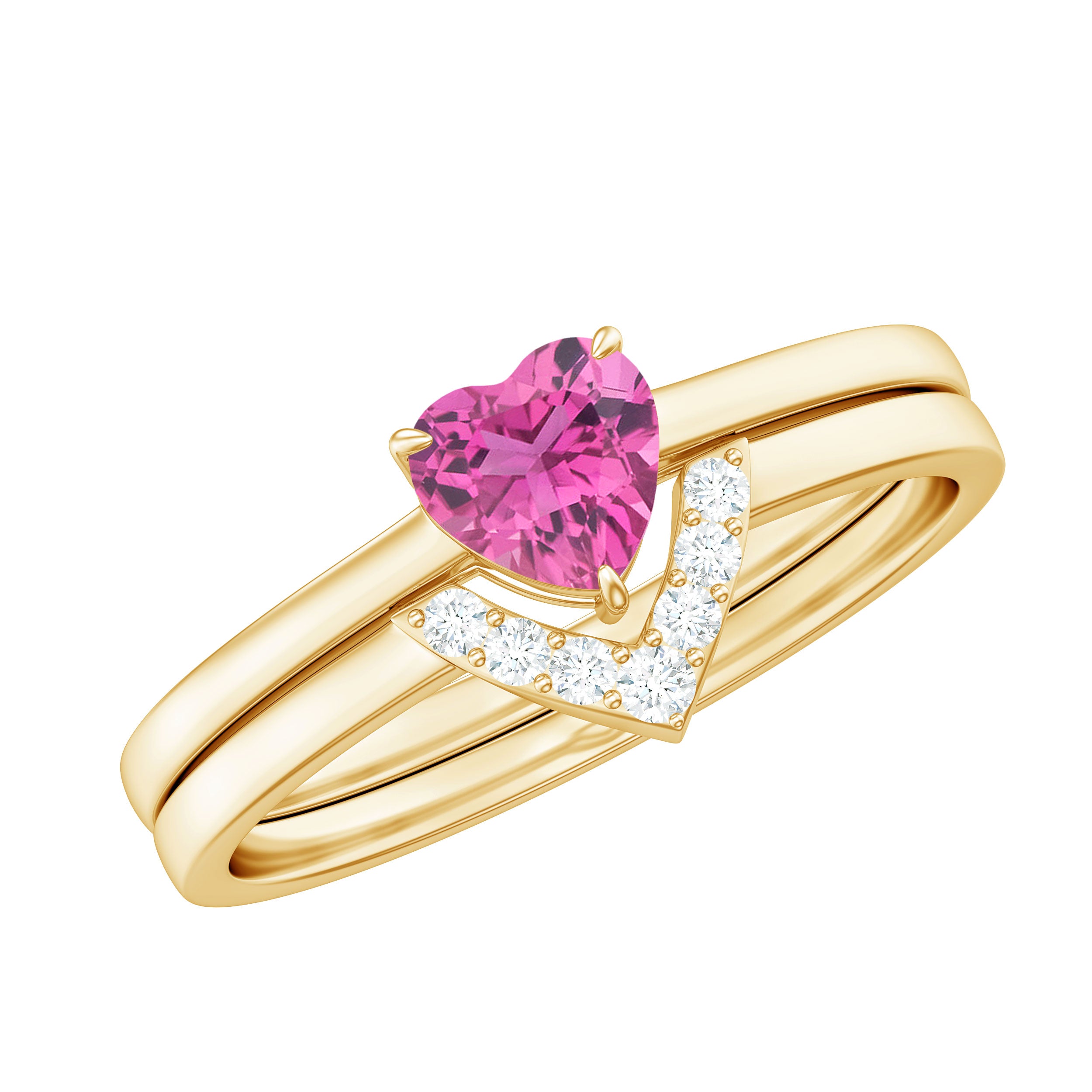 Embrace the language of love with this Pink Tourmaline Heart Ring Set. Sparkling Diamond amplifies the romance and beauty of this enchanting duo.
