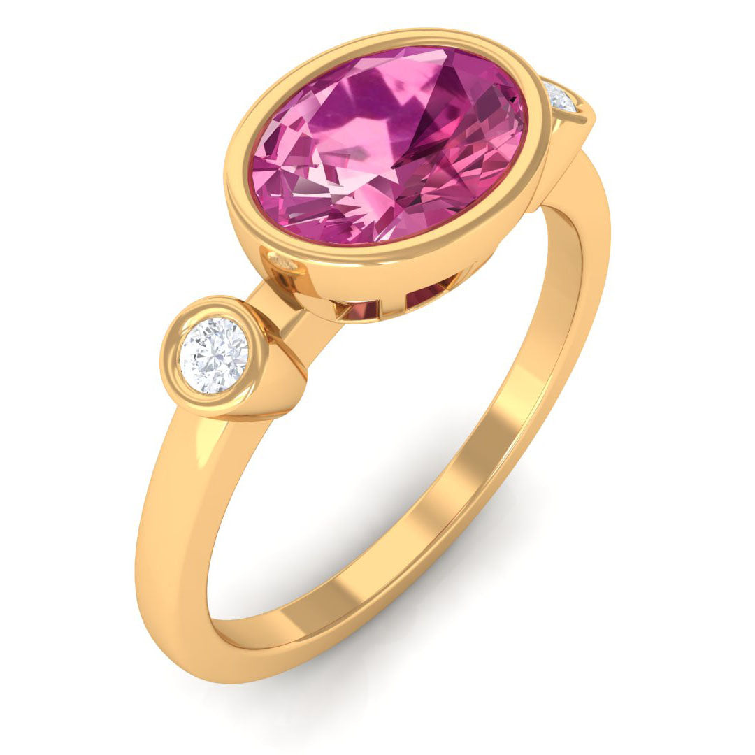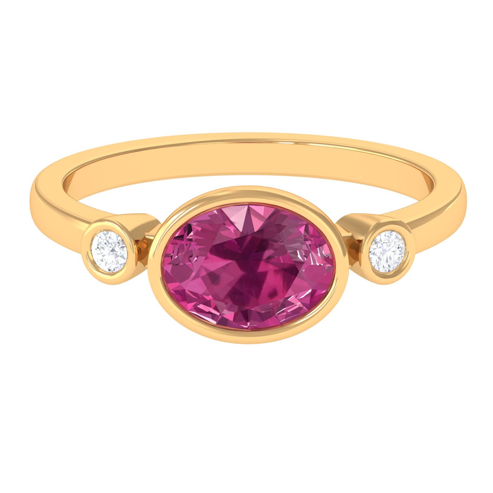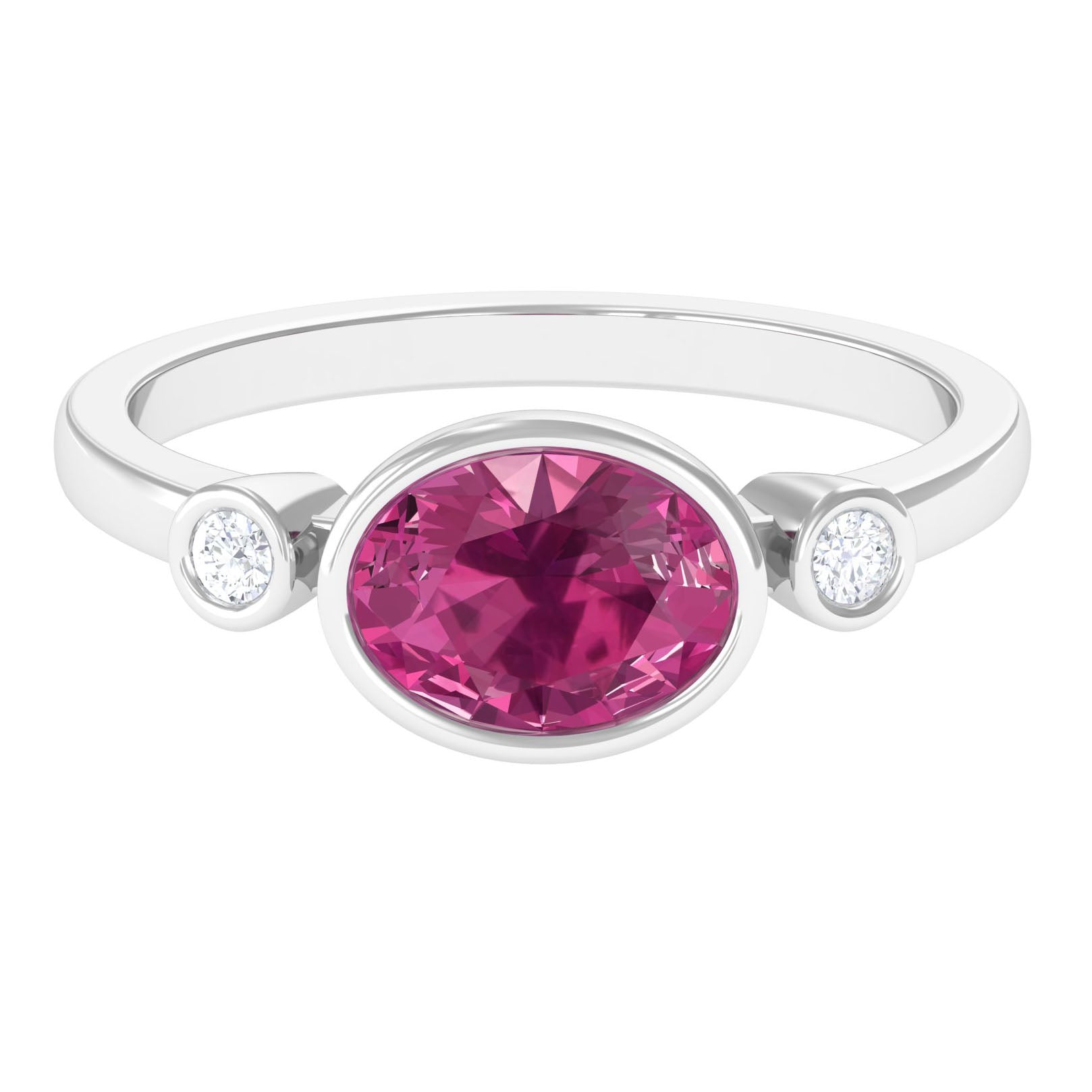 Pink Tourmaline Solitaire East West Ring with Diamond