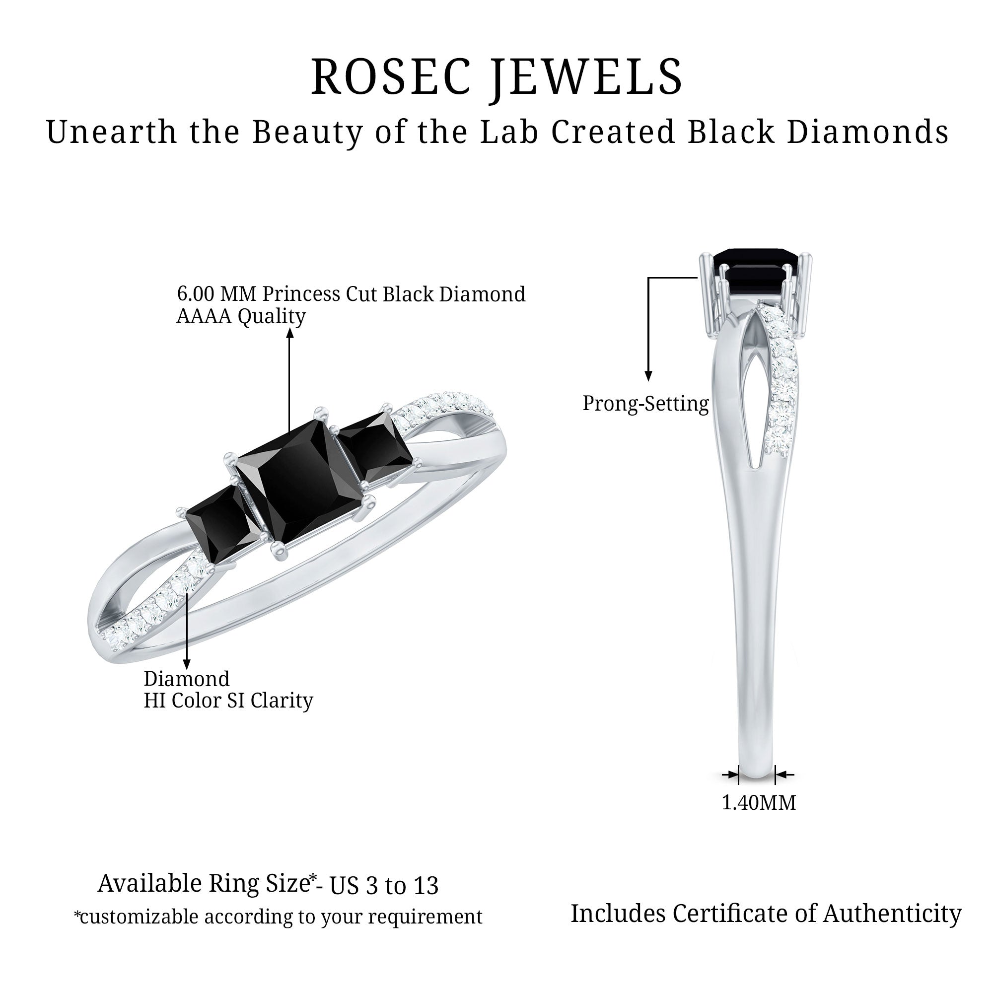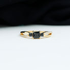 Princess Cut 3 Stone Created Black Diamond Infinity Ring with Diamond