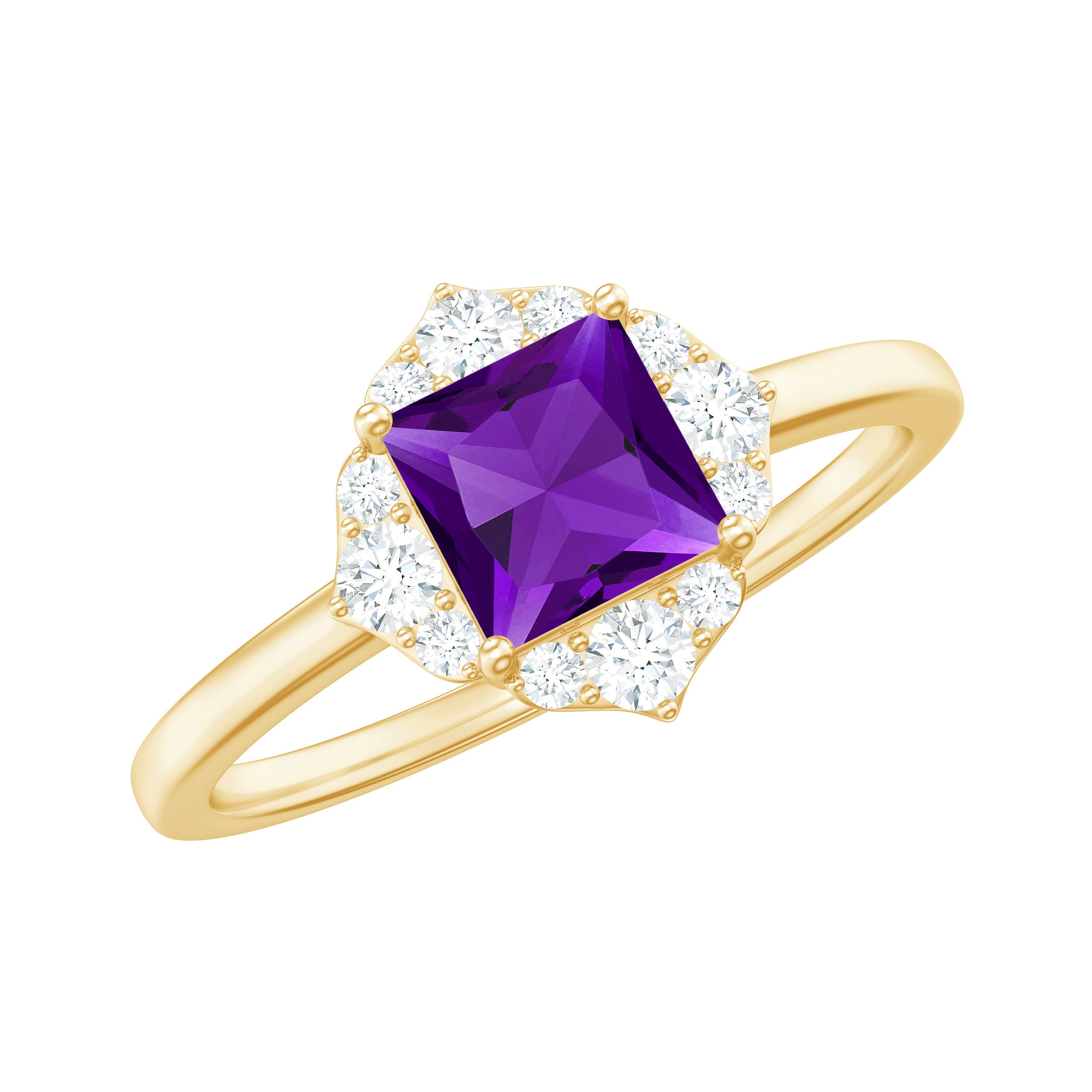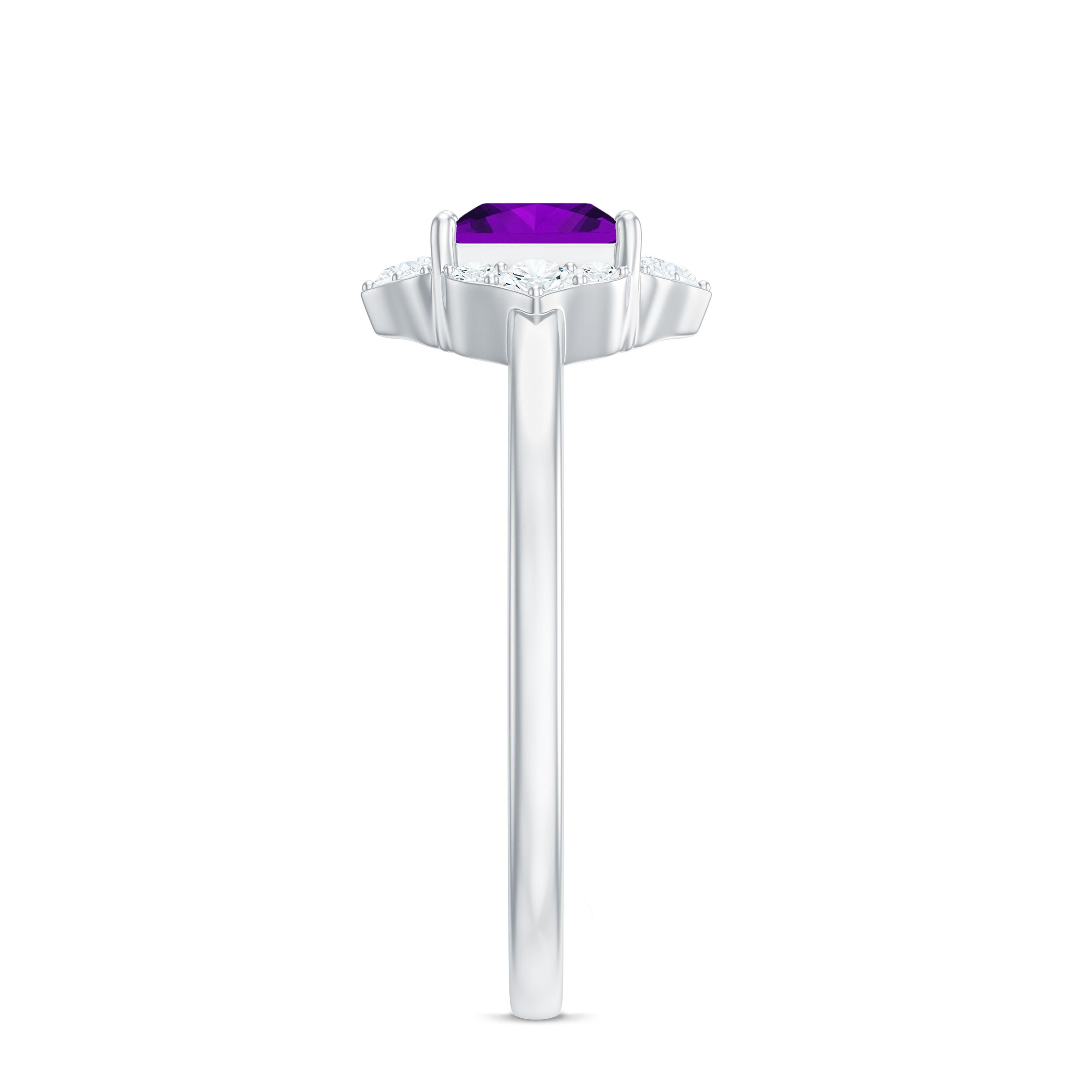 Princess Cut Amethyst and Diamond Flower Halo Ring