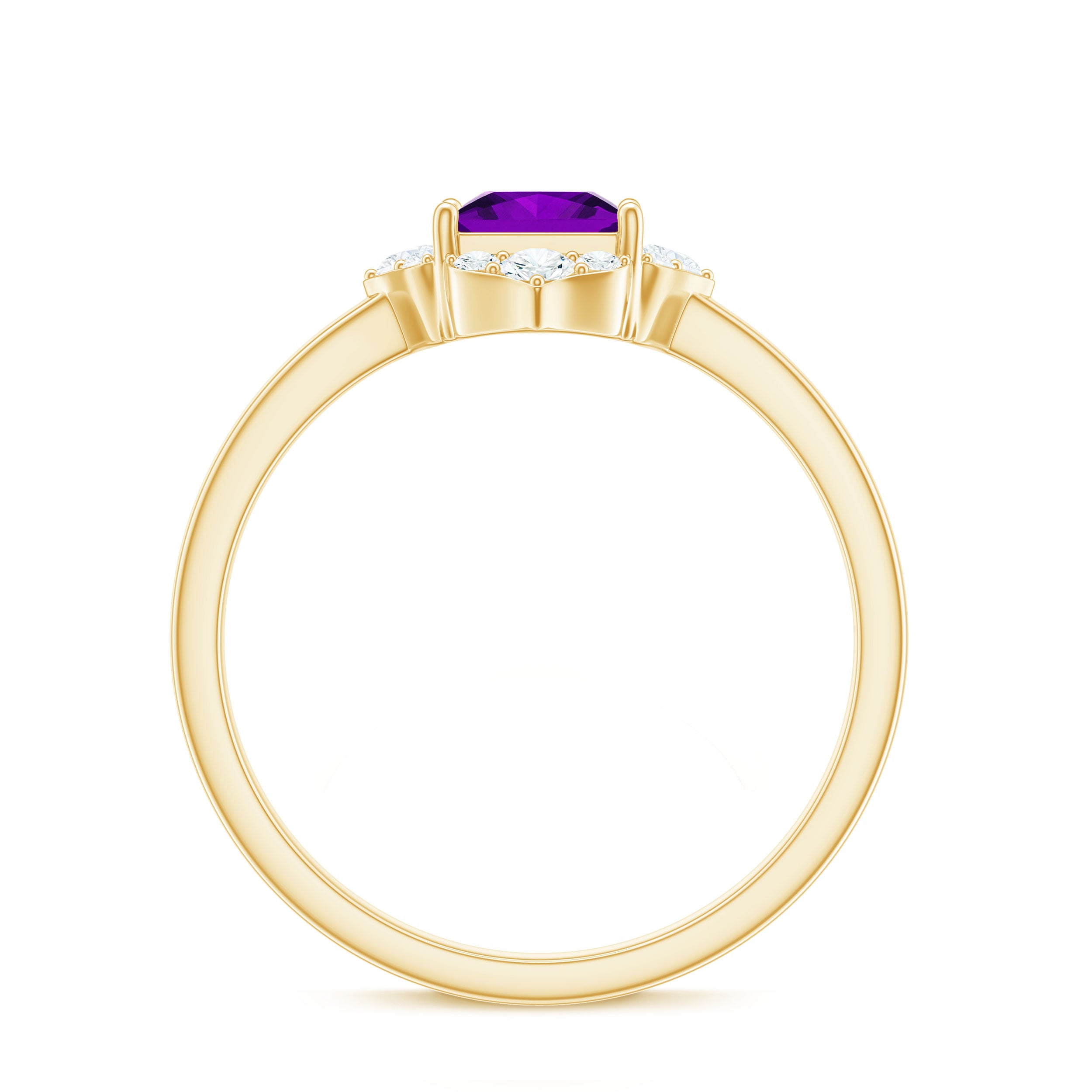 Meant to cover your desk-to-dinner looks, this Amethyst Halo Ring makes a wow-worthy statement any day! It boasts a Center Stone of 5 MM Princess Cut Amethyst that allures with its royal appeal, sheltered by Prong Setting. Taking it from ordinary to extraordinary is the dazzling flower-inspired Halo of Round Shape Diamond. Complement your pretty dresses with it to channel the feminine diva in you or team it up with your casuals for an eye-catching work that isnt too loud, this Certified Amethyst Ring is meant to up your fashion game.
