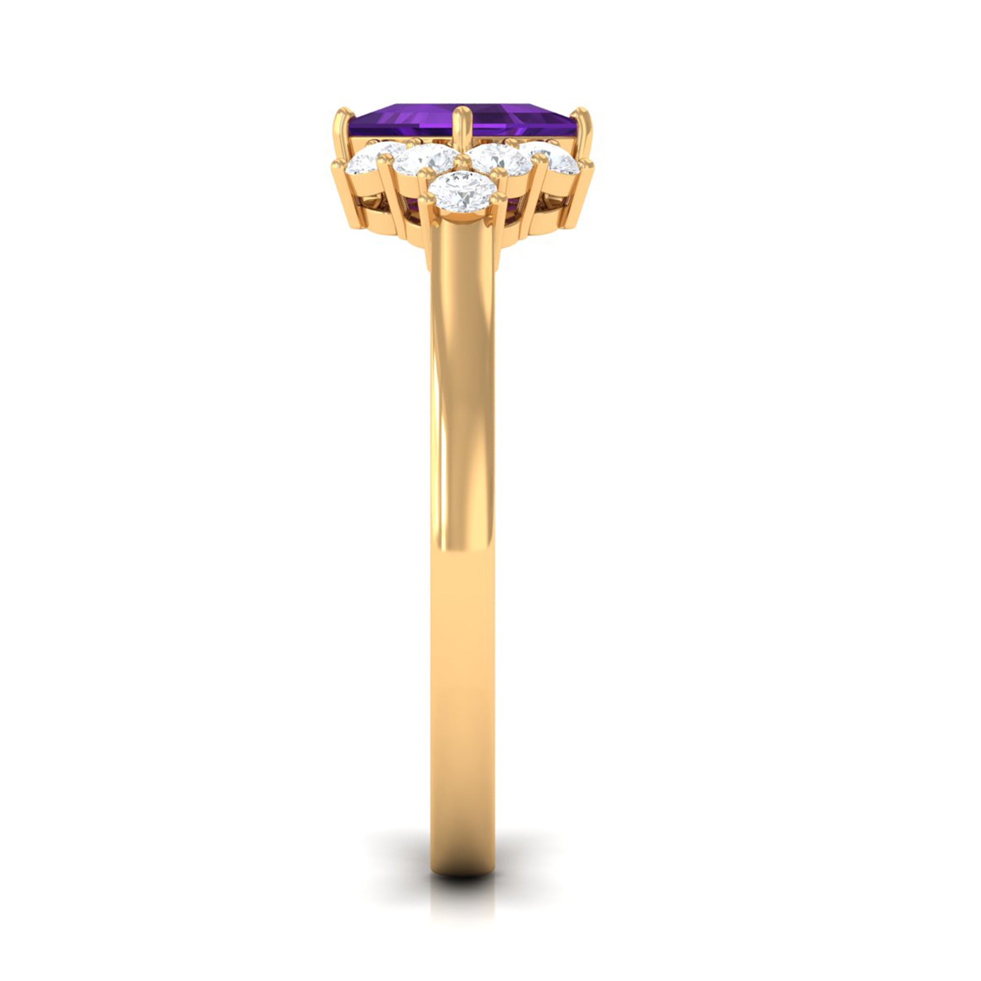 Princess Cut Amethyst Designer Engagement Ring with Diamond