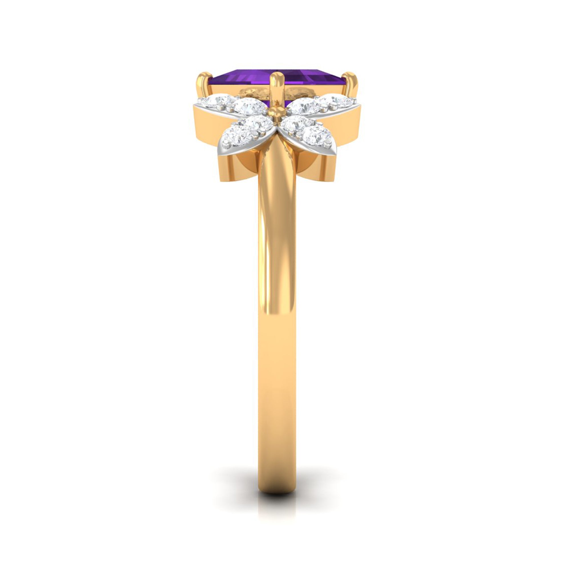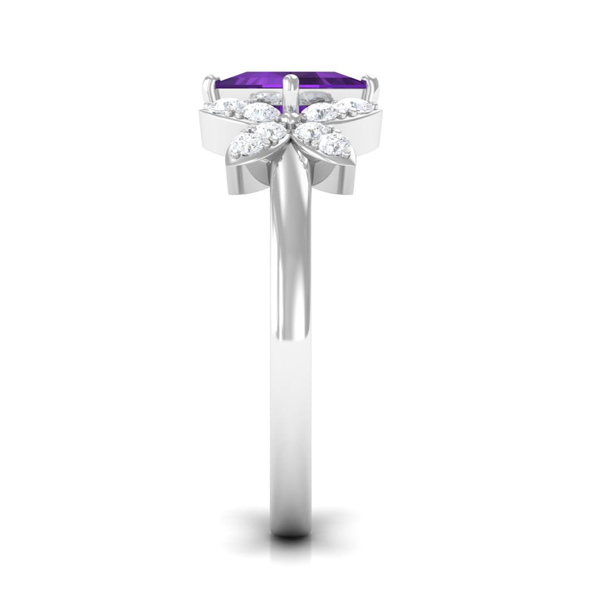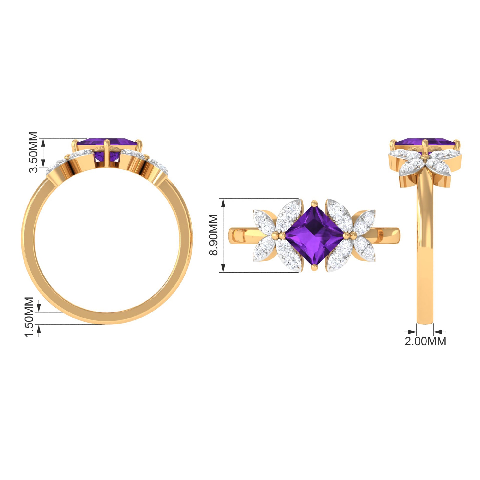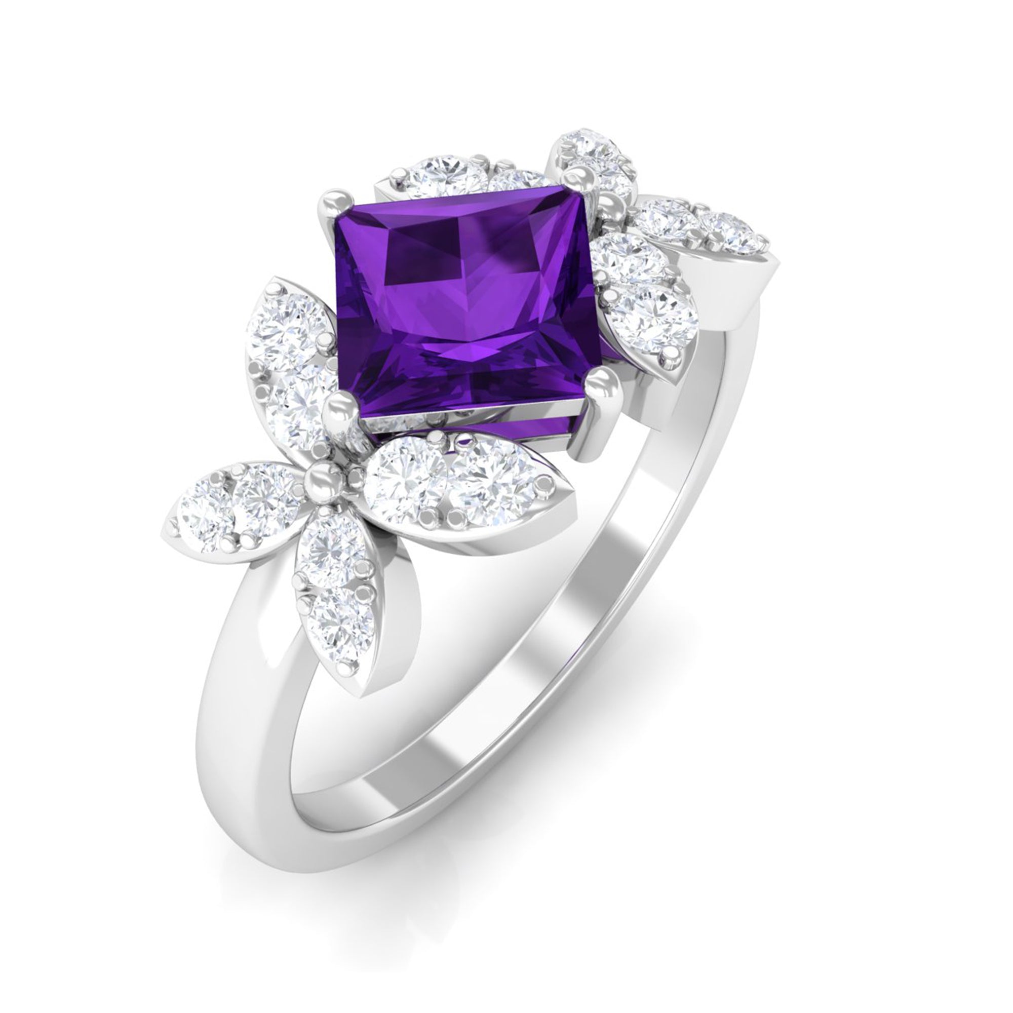 Princess Cut Amethyst Floral Engagement Ring with Diamond