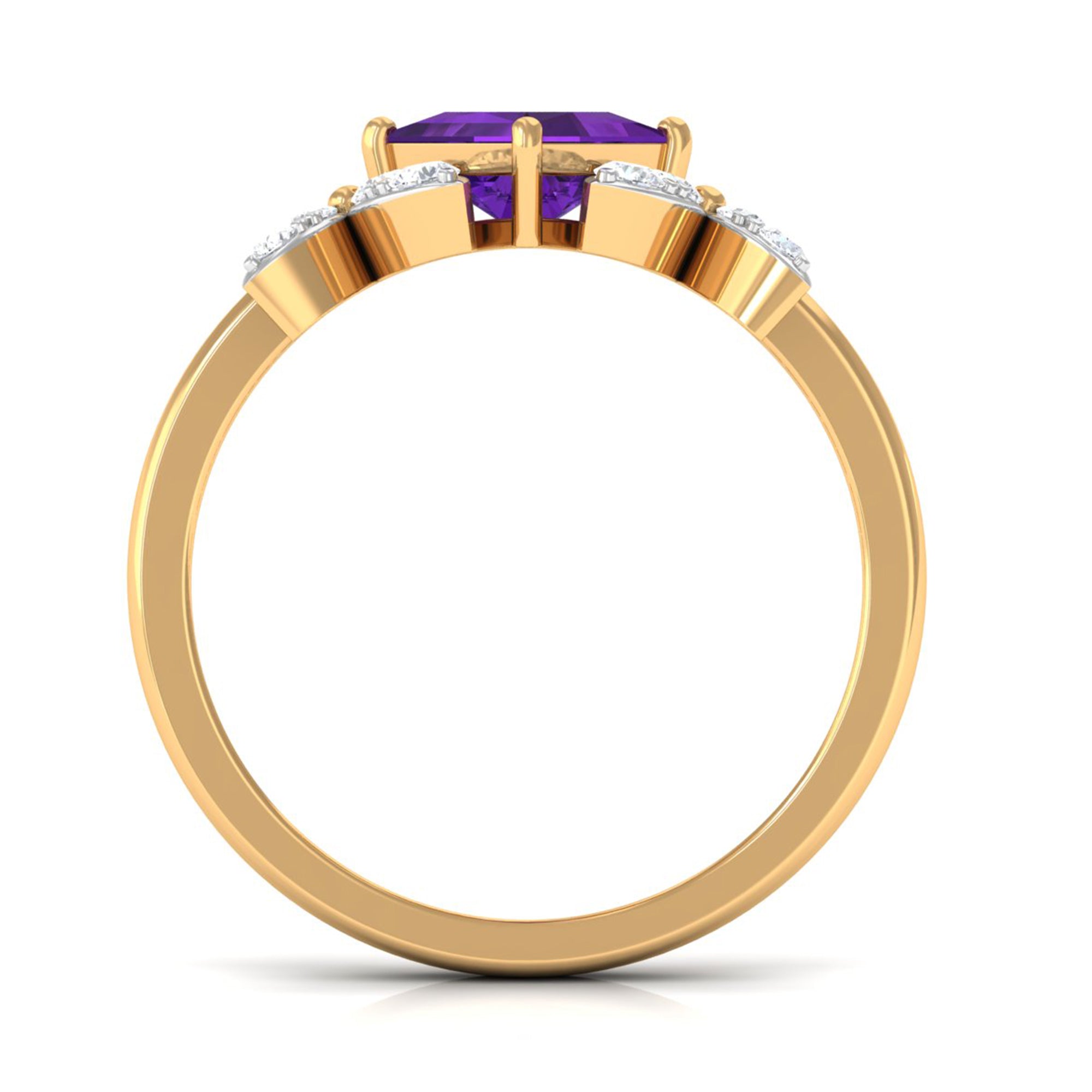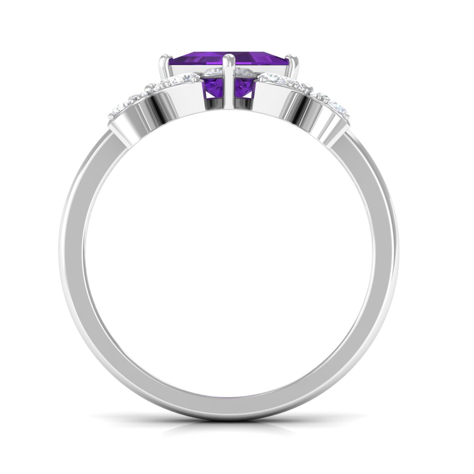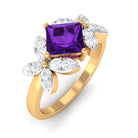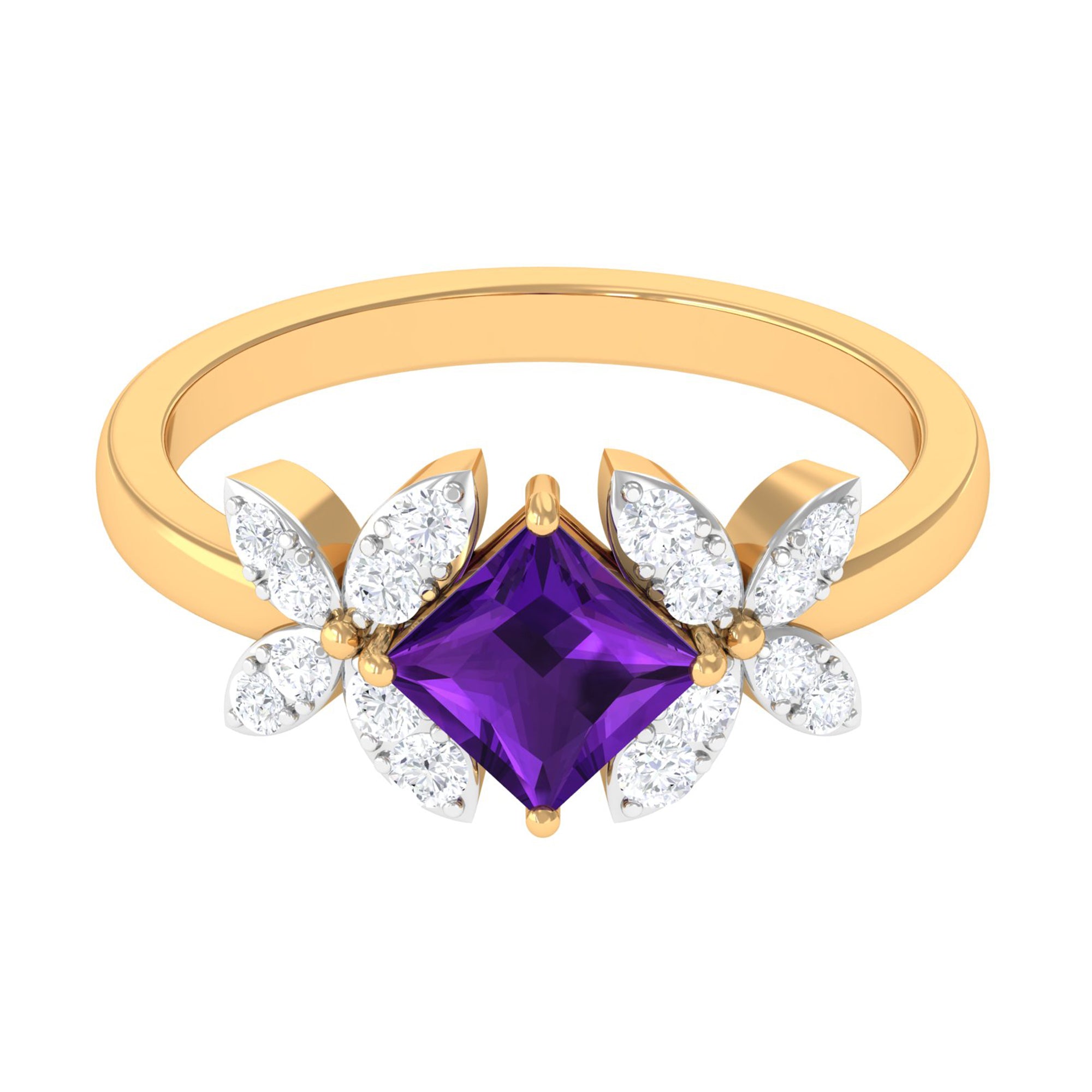 Princess Cut Amethyst Floral Engagement Ring with Diamond