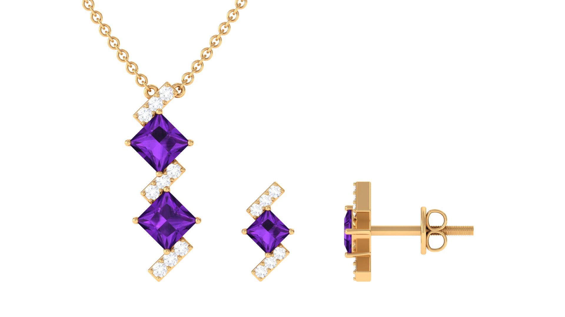 Princess Cut Amethyst Modern Jewelry Set with Diamond
