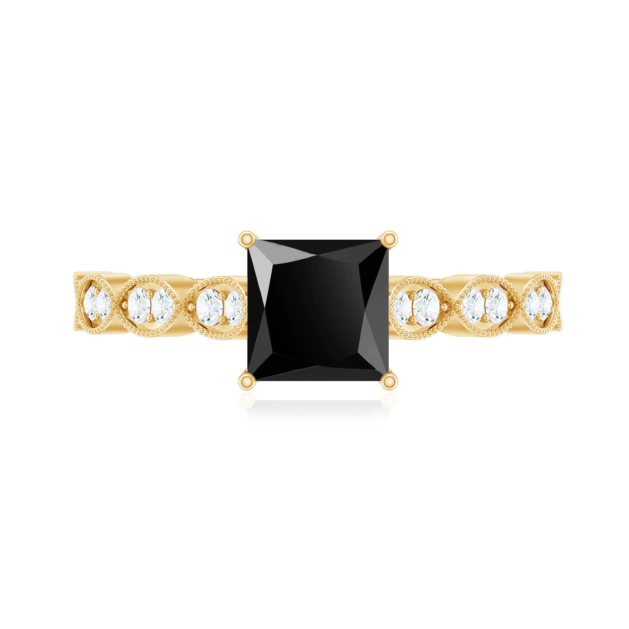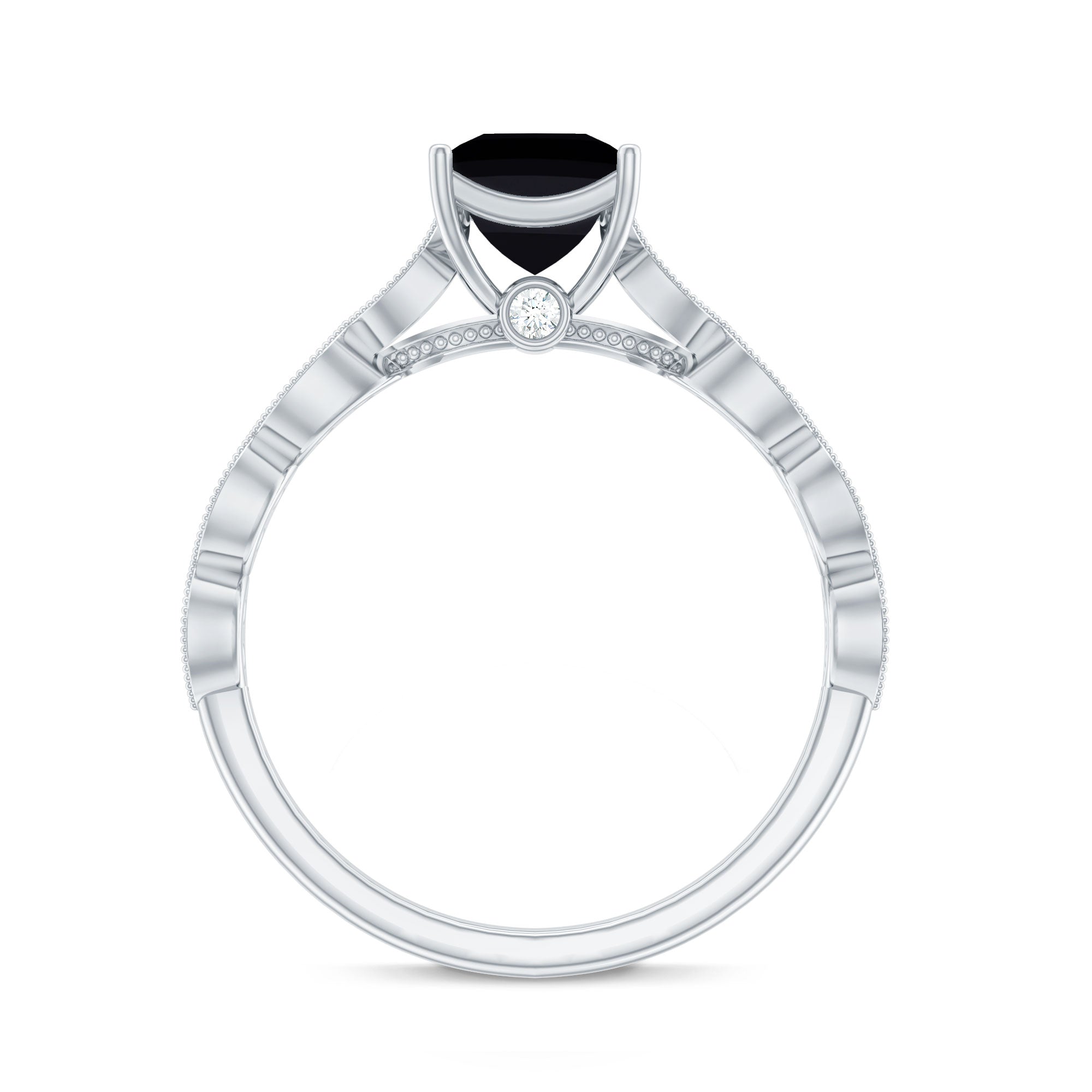 Princess Cut Black Onyx and Diamond Designer Engagement Ring