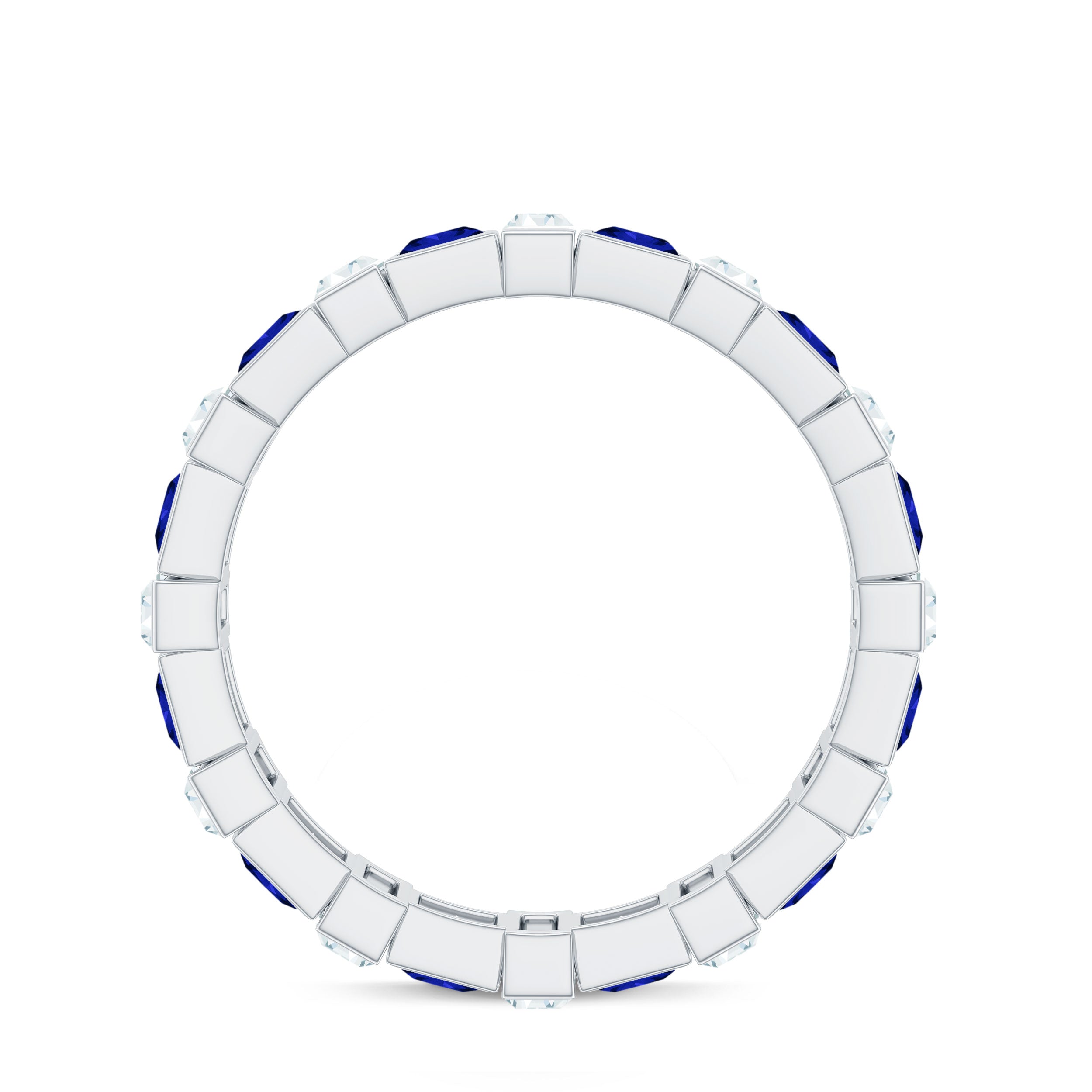 Princess Cut Created Blue Sapphire and Moissanite Eternity Ring