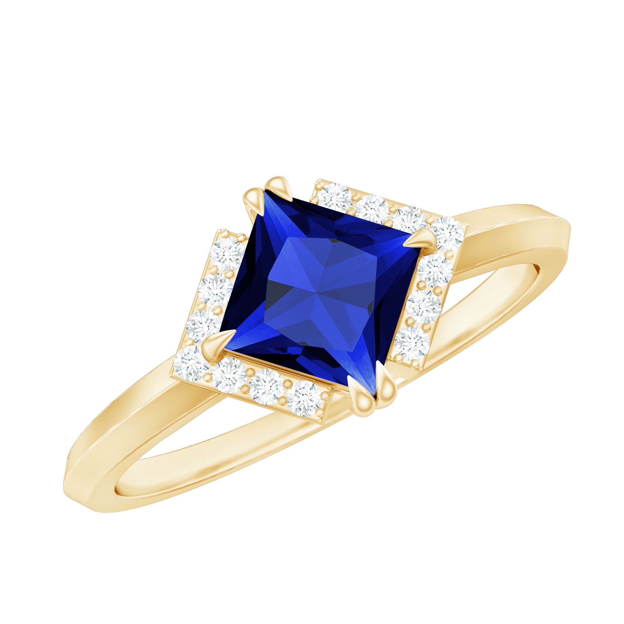 Princess Cut Created Blue Sapphire Simple Engagement Ring with Diamond