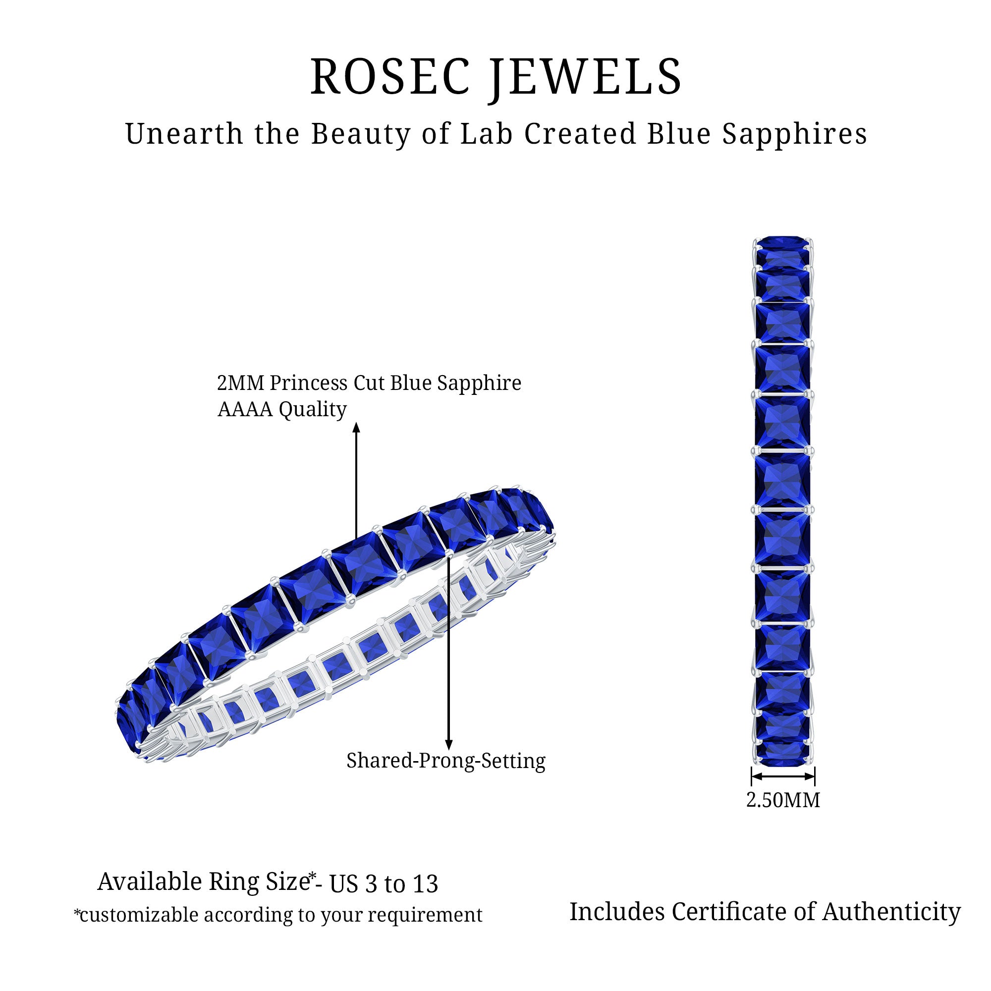Princess Cut Certified Lab Created Blue Sapphire Full Eternity Ring